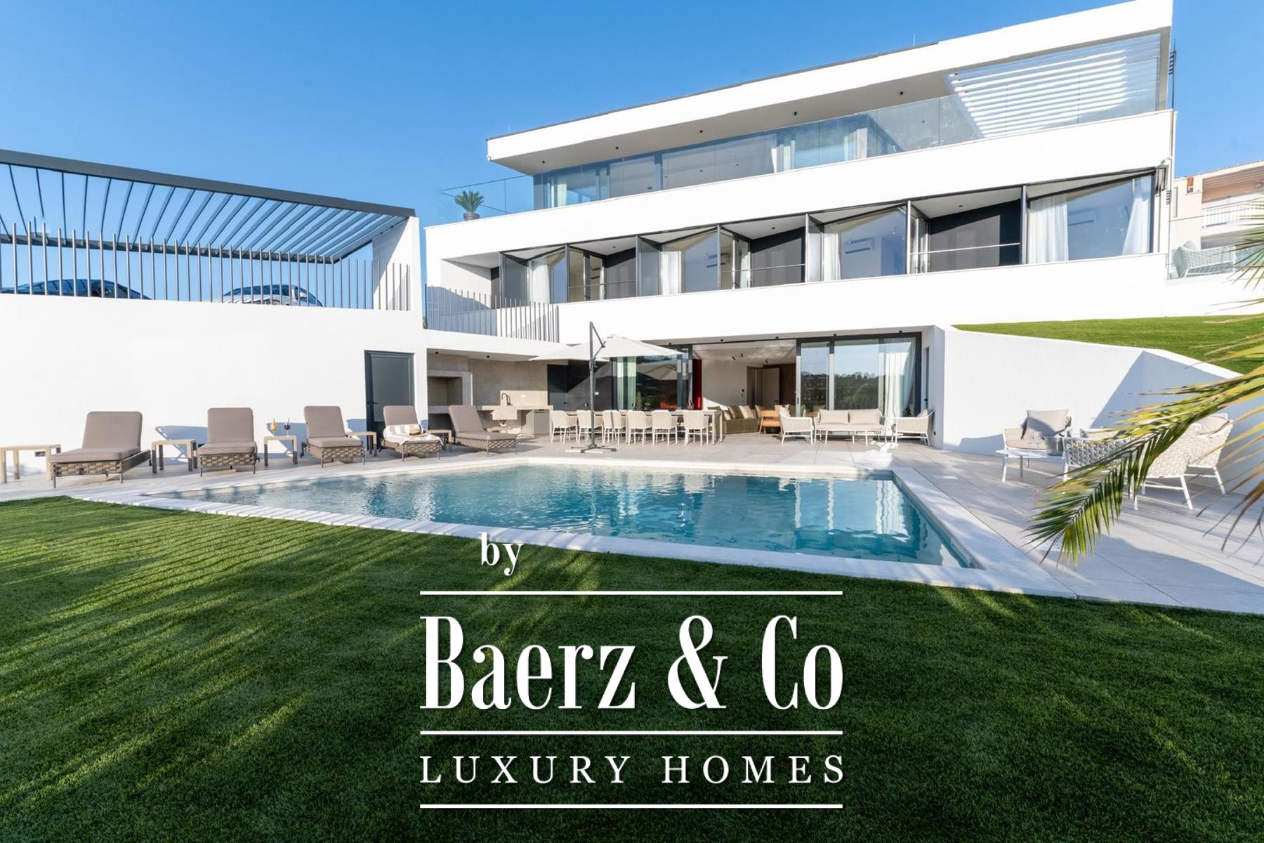 The ground floor hosts four spacious bedrooms, each with its own bathroom, providing both privacy and comfort. On the first floor, an open-plan kitchen, living and dining area flows seamlessly onto a terrace. Here, a jacuzzi and unobstructed sea views create the setting for intimate evenings and quiet contemplation.