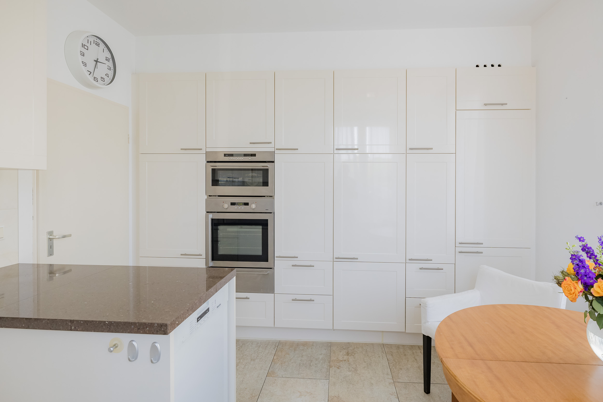 The villa also has a double garage with one electric door, a storage loft, and a door to the garden. There is parking space for three cars in front of the garage.