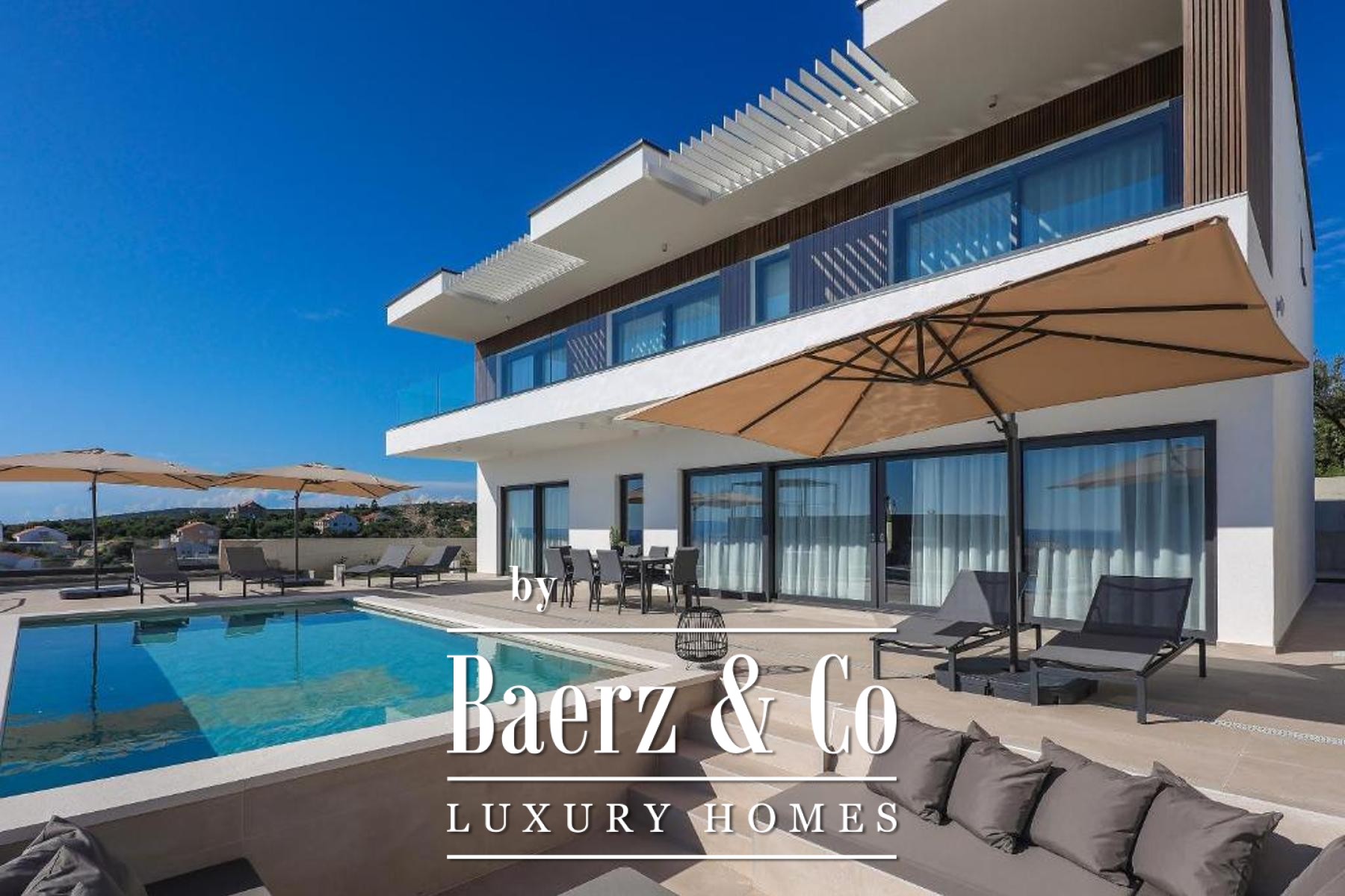 This townhouse Novalja is a statement of contemporary Mediterranean living set just 90 meters from the sea in Jakišnica, Lun. The villa occupies an 804 m² landscaped plot, surrounded by curated gardens and open to far-reaching views of the Adriatic and evening sunsets. Within 300 m² of thoughtfully composed space, the home unfolds across two storeys, the main living area defined by open-plan architecture that flows into a covered terrace and generous sun deck.