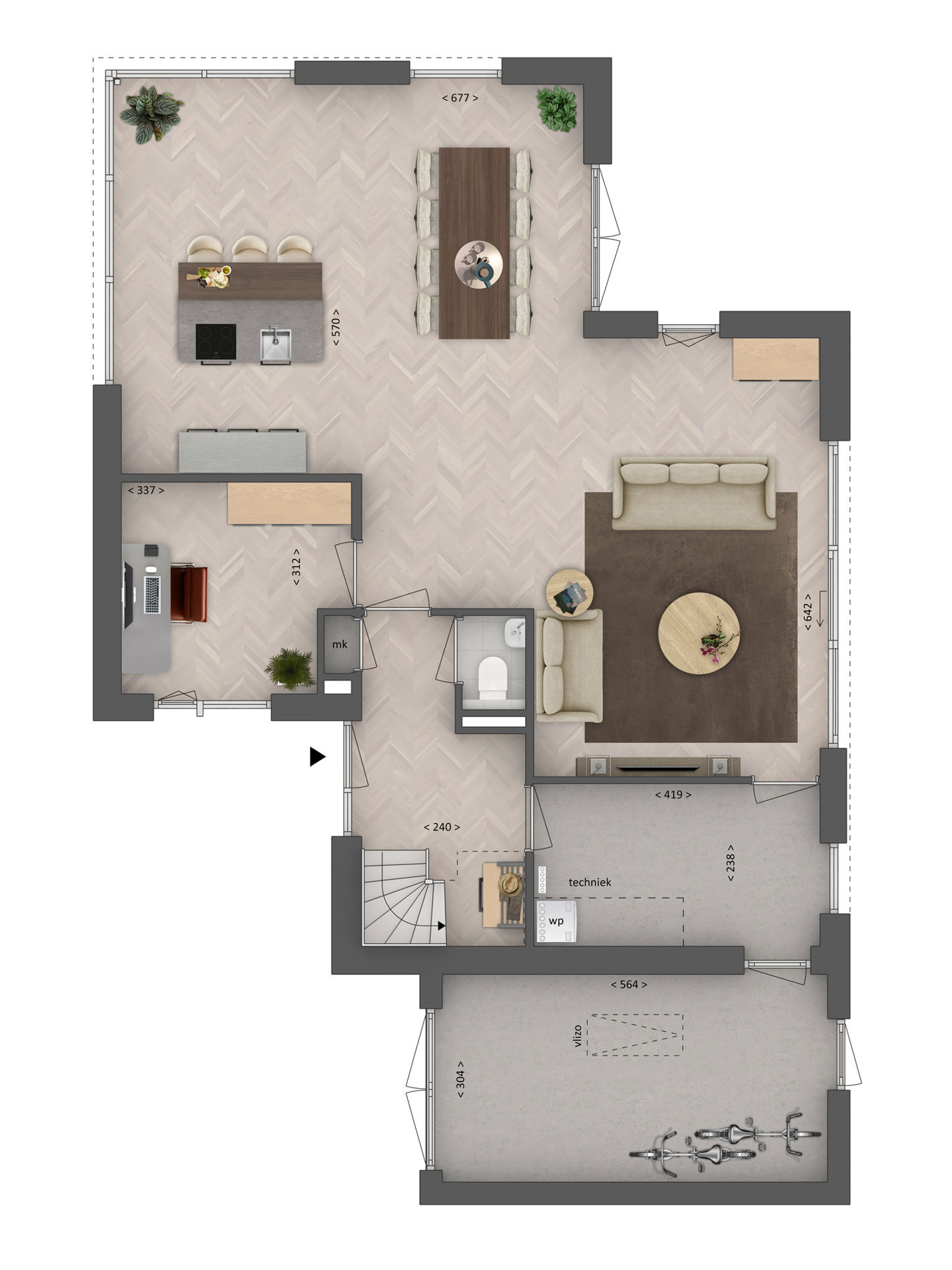 Een karakteristieke woning met houten accenten en opvallend veel raampartijen. Landelijk en toch modern. Even binnenkijken? Via de voordeur stap je de hal binnen die de begane grond als vanzelf verdeelt. In het open woongedeelte staan koken, eten en wonen gezellig met elkaar in verbinding. Vanuit de keuken heb je toegang tot de ruime tuin op het zuid-oosten en alle extra voorraad sla je gemakkelijk op in de bijkeuken. Zet een lekkere grote eettafel neer voor het hele gezin om lang aan te tafelen. In de woonkamer is genoeg plek voor een ruime zithoek. Hadden we de extra werkkamer al benoemd? Deze is te bereiken vanuit de woonkamer of gang en is ook om te toveren tot een fijne speelkamer voor de kinderen. De keuze is aan jou!