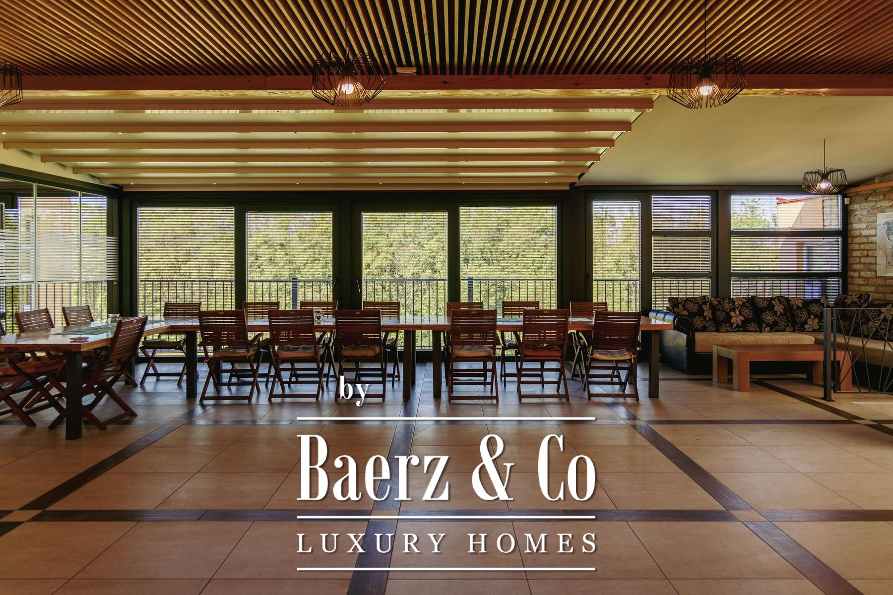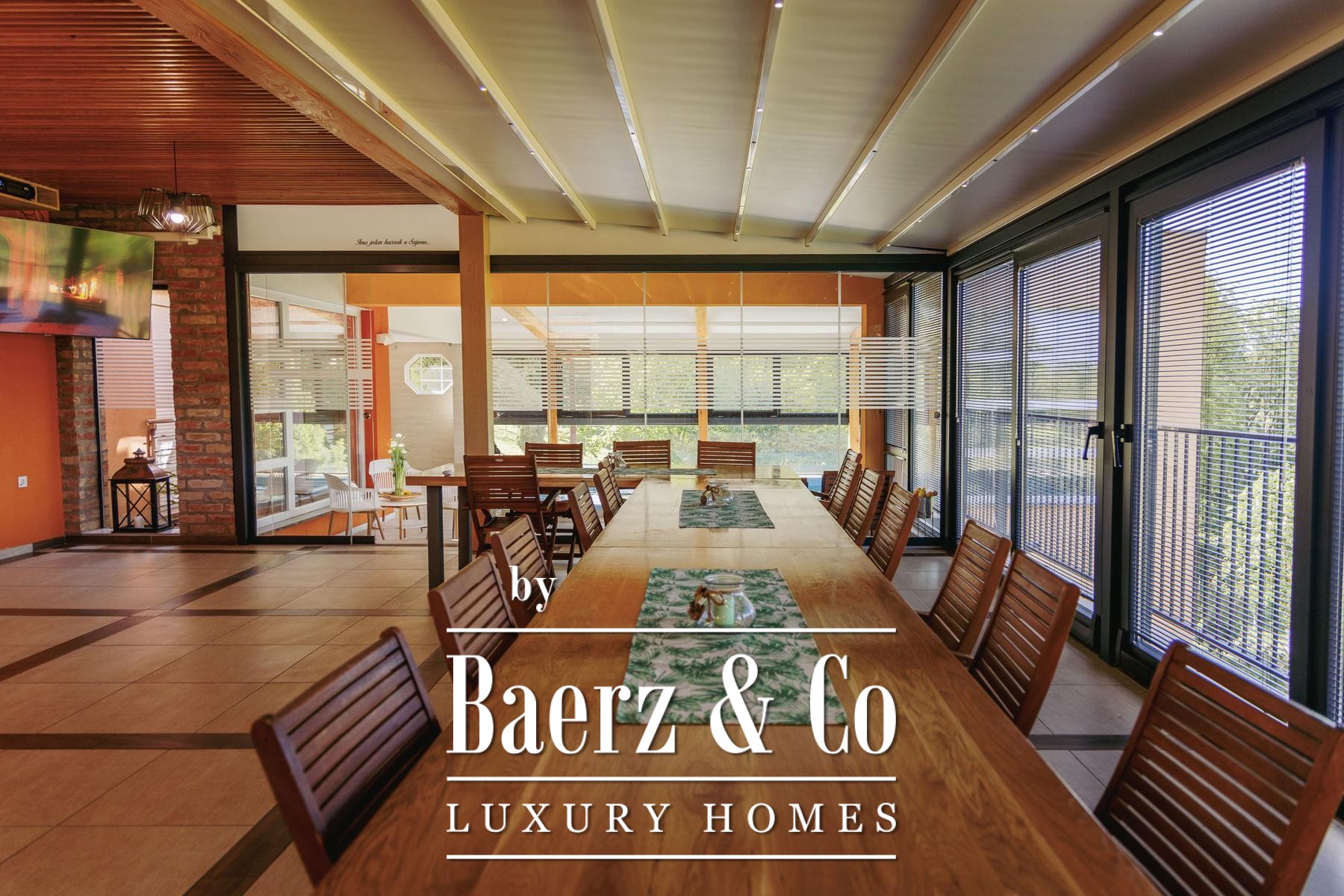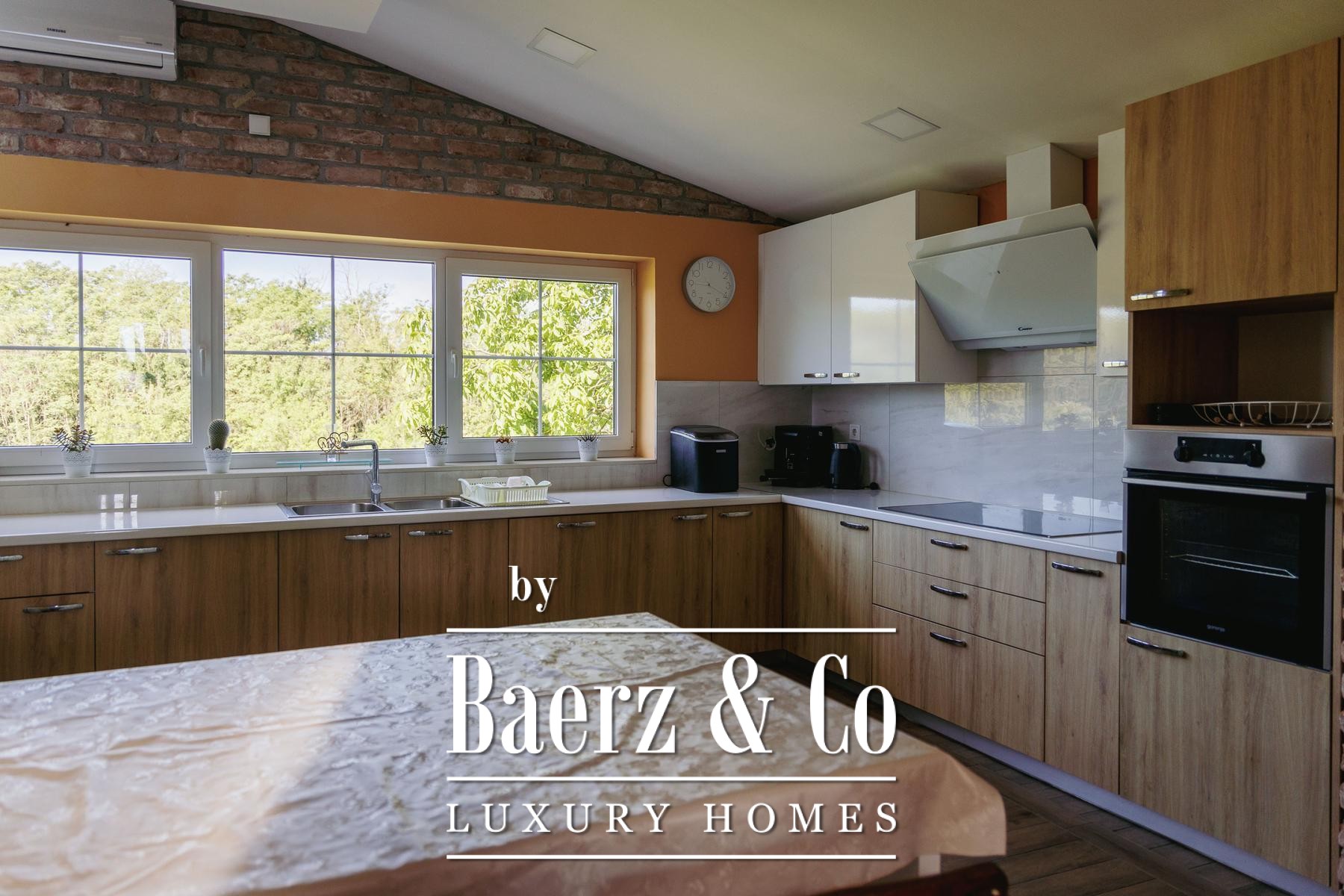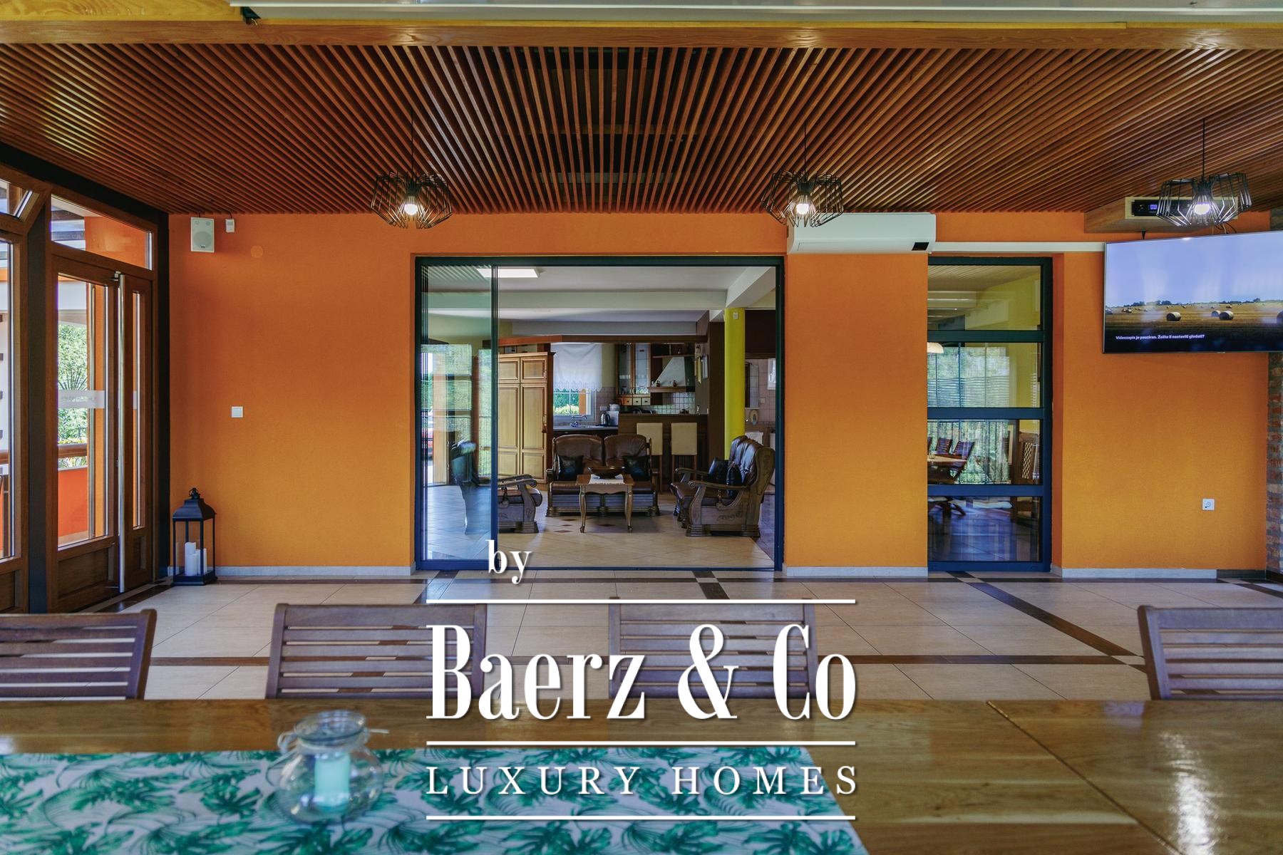 The attic provides a separate living zone with its own lounge, two bedrooms, a bathroom, and a spacious terrace offering a panoramic view across the Slavonian plain. Throughout the villa, robust infrastructure supports comfort and autonomy, including combi gas boiler central heating, electric underfloor zones, multiple air conditioning units, and solar panels fulfilling most electricity needs.