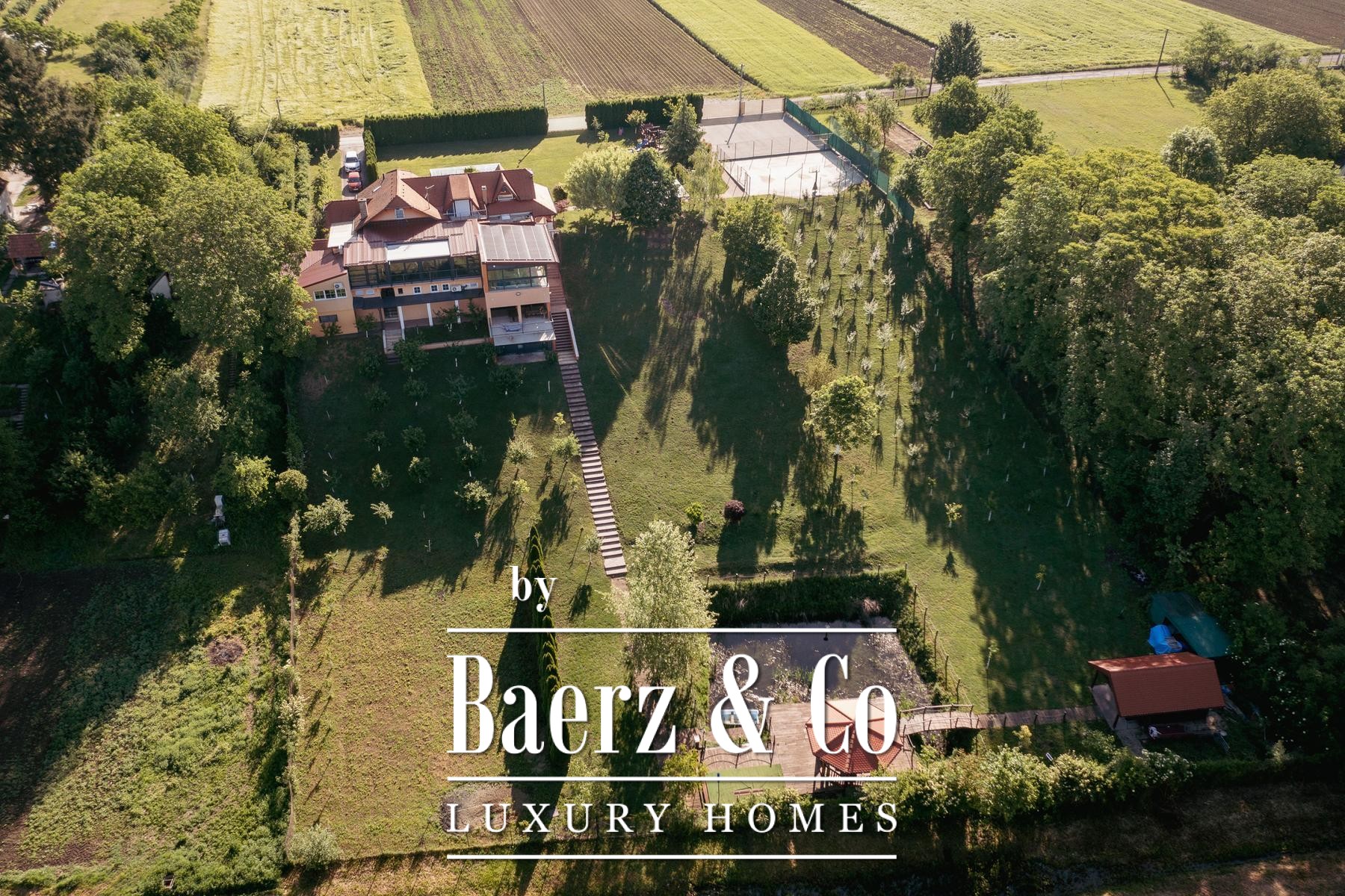 On the grounds, a basketball court, fish pond, three gazebos, an orchard, and a tool shed illustrate a lifestyle shaped by both recreation and contemplation. Eleven outdoor parking spaces add further practicality. For those seeking a villa Nuštar experience defined by privacy, expansiveness, and a sense of rootedness, this property delivers a rare combination of scale and serenity.