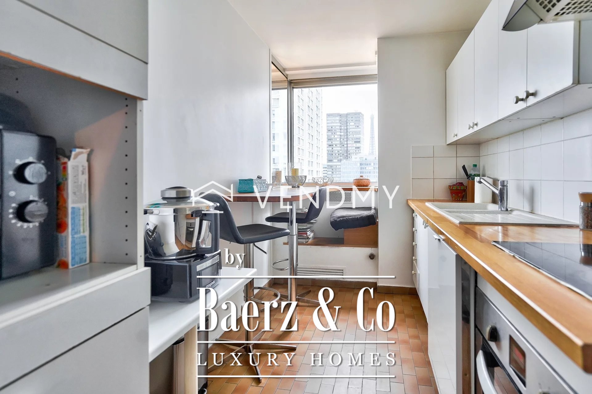 Apartment Paris 15ème blends architectural clarity with extraordinary Parisian views. Positioned on a high floor within an elegant building, this 95 m² residence offers direct sightlines over the Seine and the Eiffel Tower, anchoring daily life in the city's cultivated heart. The entrance opens into a spacious double living room, where natural light and city panoramas define the atmosphere. A separate, fully-equipped kitchen, conceived with flexibility for open-plan living, enhances the sense of space. Two bedrooms and two bathrooms establish comfort and privacy, complemented by a guest WC and a dedicated laundry room. Designed by an interior architect, every fitting and finish is purposeful and enduring. Security and convenience include a 24/7 janitor, lift, video entry, digicode, and full optical fiber connectivity. Monument and city vistas frame the windows, inviting an elevated pace of life. Proximity to Bir Hakeim and Charles Michels metro stations places central Paris within effortless reach. The apartment includes a cellar, with the option of additional parking. For those seeking an apartment in Paris 15ème that celebrates both design and urban spectacle, this address balances discretion with a sense of place.