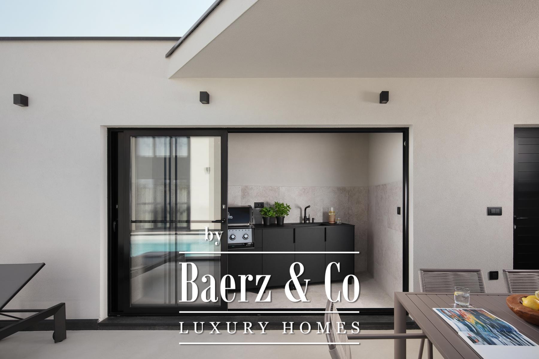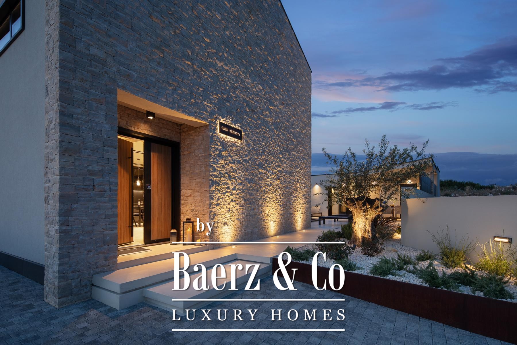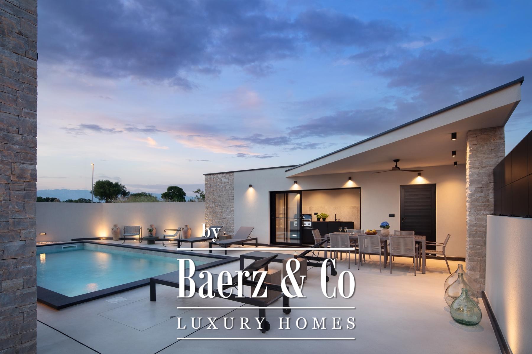 Villa Poličnik Croatia presents a refined new construction set within a discreet, tranquil neighborhood just 5,800 meters from the sea. This contemporary detached property spans 160 m² on a 427 m² plot, uniting clarity of design with everyday comfort.