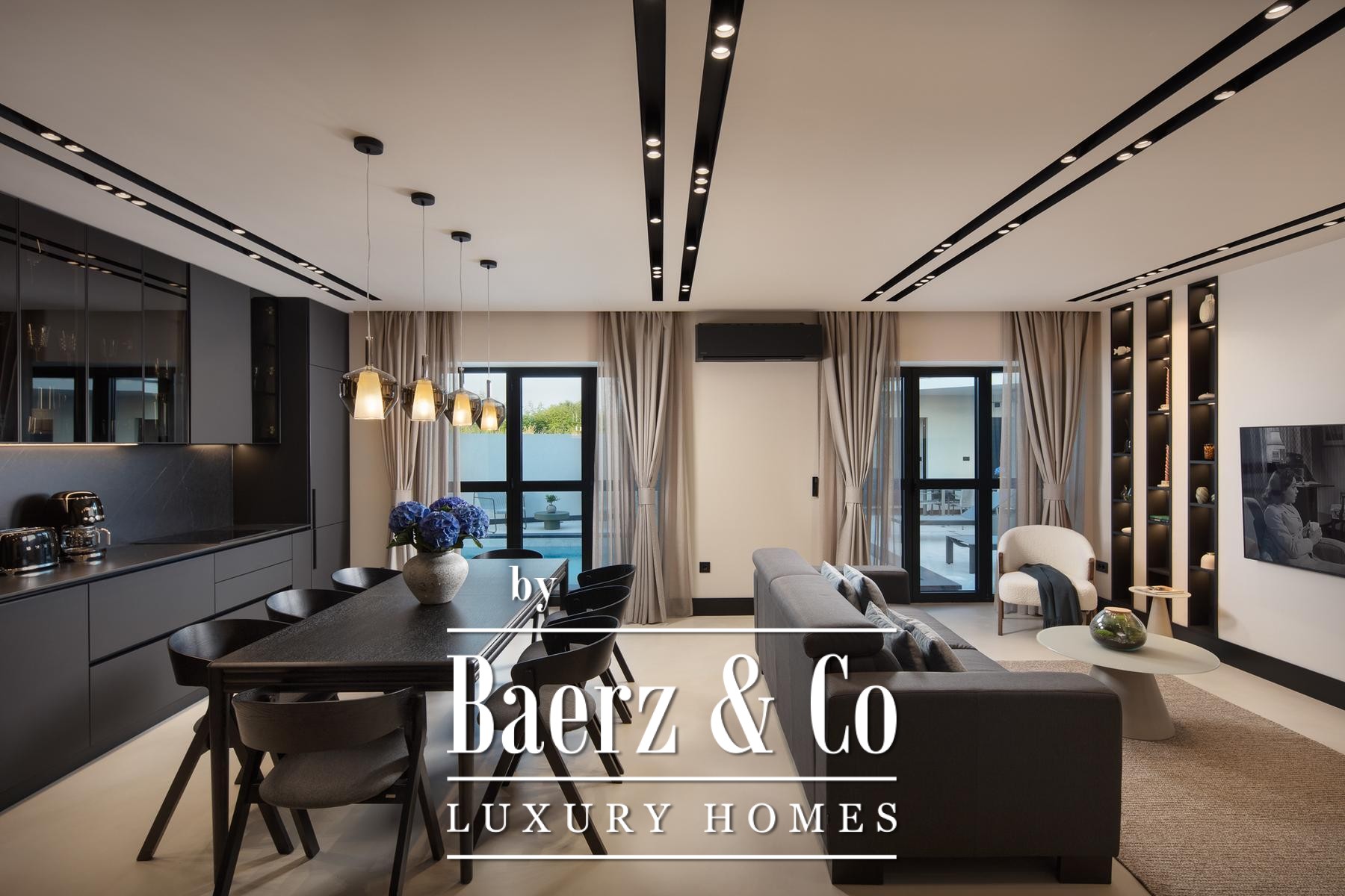 Refined materials, including micro cement finishes, and select furnishings bring a sense of calm sophistication to each space. A 32 m² swimming pool with heating, sauna, jacuzzi, and an outdoor summer kitchen enhance the atmosphere of easy Croatian living. Each room is air-conditioned with Toshiba appliances, complemented by underfloor heating and electric heaters, ensuring comfort in every season. The villa is sold fully furnished and includes two parking spaces, offering a lifestyle of discreet luxury in Poličnik. Luxury villa for sale in Poličnik Croatia for those who value tranquility, design, and modern amenities.