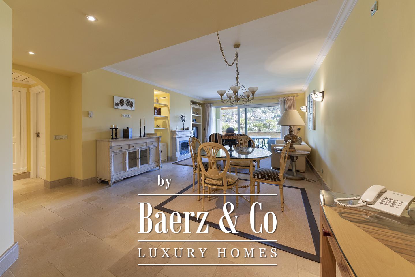 Apartment Port d'Andratx presents a refined Mediterranean experience, nestled within the exclusive Gran Folies complex. This 125 m² apartment balances spacious living with a sense of privacy, featuring a generous living room that seamlessly opens to a large covered terrace and a private Mediterranean garden, ideal for year-round enjoyment.