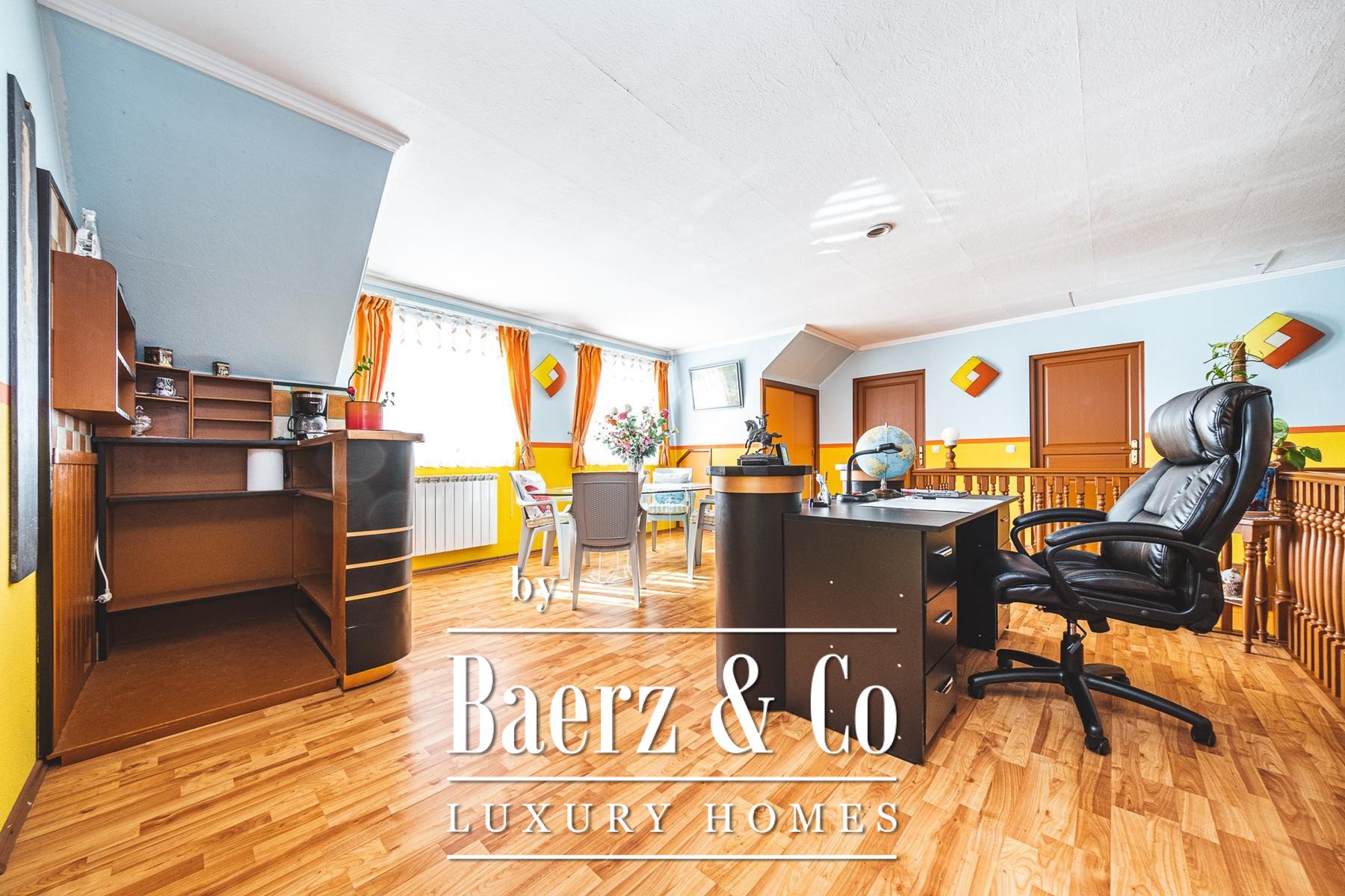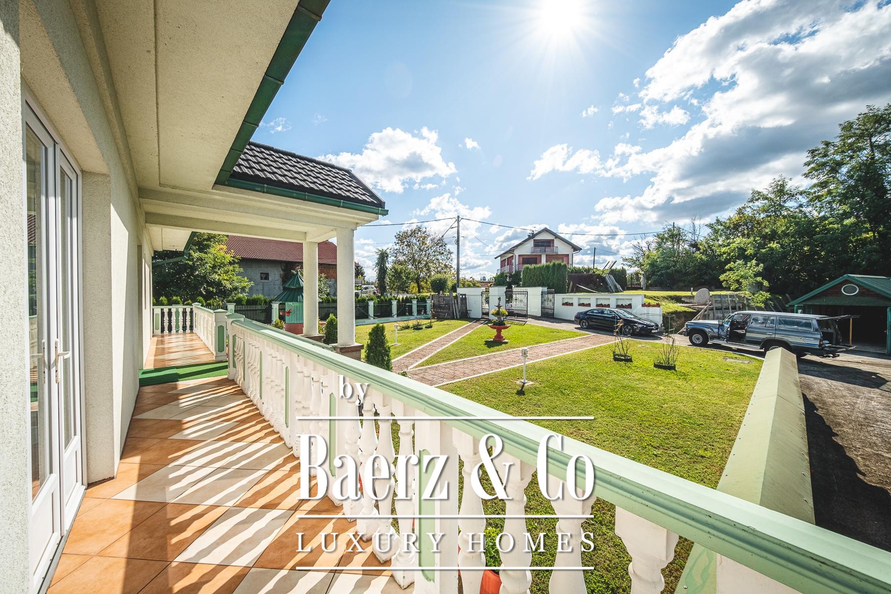 Villa Pušća offers a French-style property in Croatia, presenting a blend of refined living and architecture. This villa in Pušća occupies a 2,921 m² plot and features a main residence with 396 m² of impeccably maintained interiors arranged across a spacious ground floor and an attic. The home comprises three bedrooms and three bathrooms, with terraces that invite natural light and connect the interior to the gardens. The villa is accompanied by a 64 m² barn and a garage with two storage rooms measuring 90 m², maintaining an elegant rhythm throughout the estate.