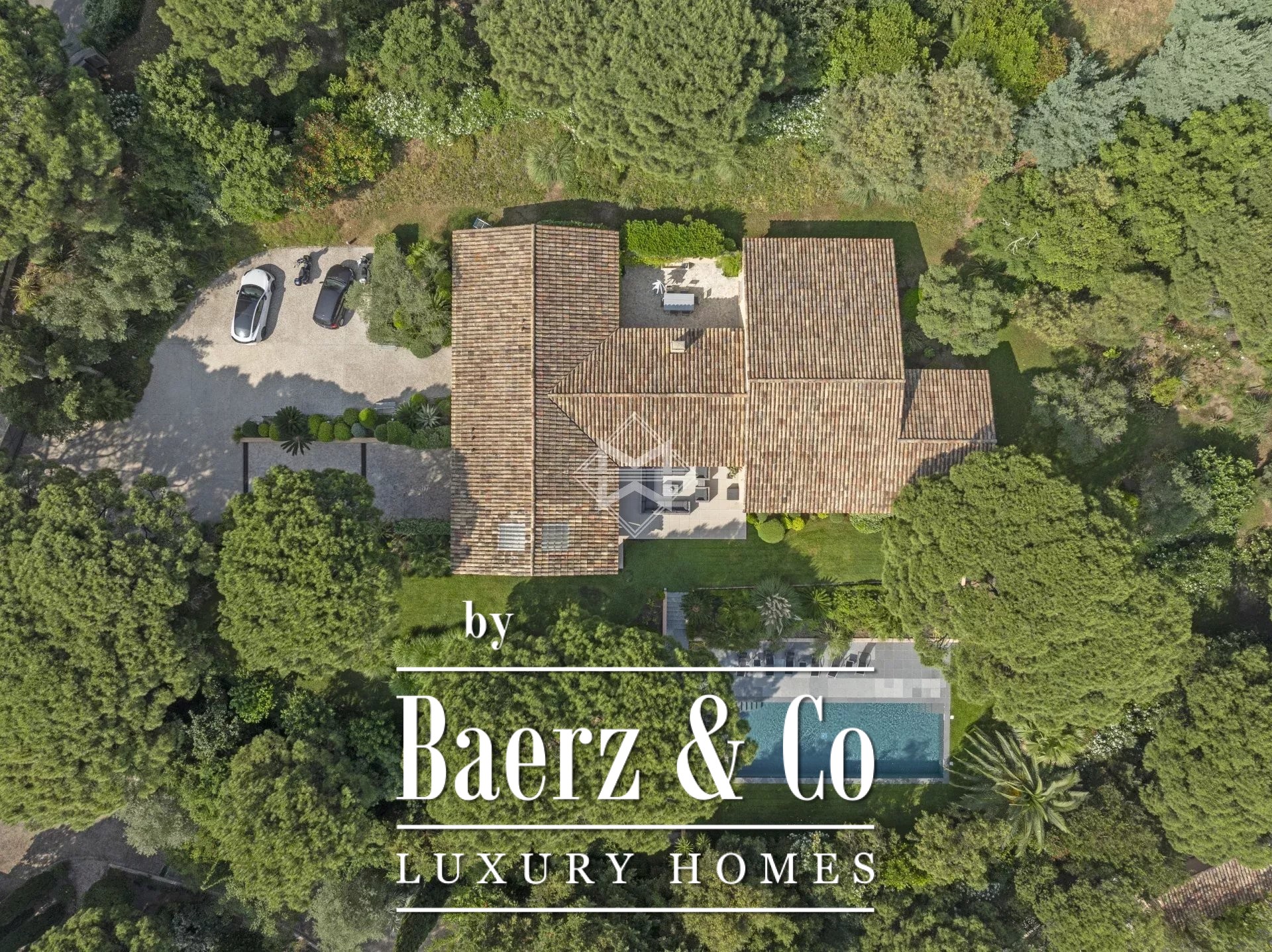 Villa Ramatuelle offers a singular expression of Provençal architecture set quietly within a 5,000 sqm landscaped plot. This property aligns timeless regional character with absolute privacy, resulting in a refined yet understated retreat. The entrance hall opens to a luminous living room that transitions seamlessly onto an inviting patio and several terraces, creating a subtle rhythm between interior and outdoor space. A dedicated dining room and a fully equipped kitchen provide the stage for both intimate gatherings and quiet meals, while three spacious en-suite bedrooms and an independent studio allow for privacy and comfort.