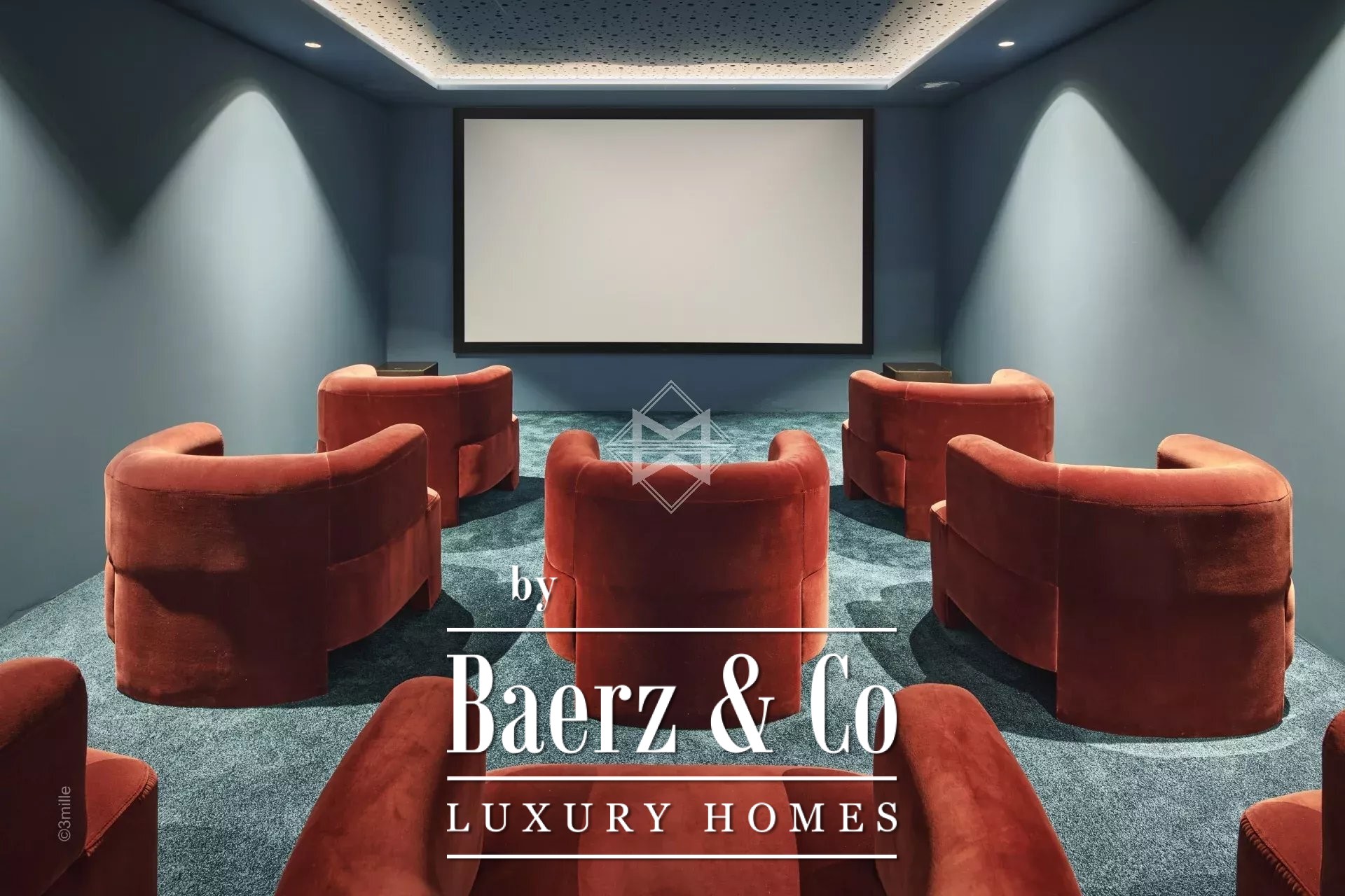 Wellness and leisure are woven into the home’s fabric, with a cinema room, extensive gym, a wellness area featuring a sauna and jacuzzi, and a heated mirror pool integrated into the gardens. The fully equipped pool house and parking with large garages reflect meticulous attention to both hospitality and discretion.