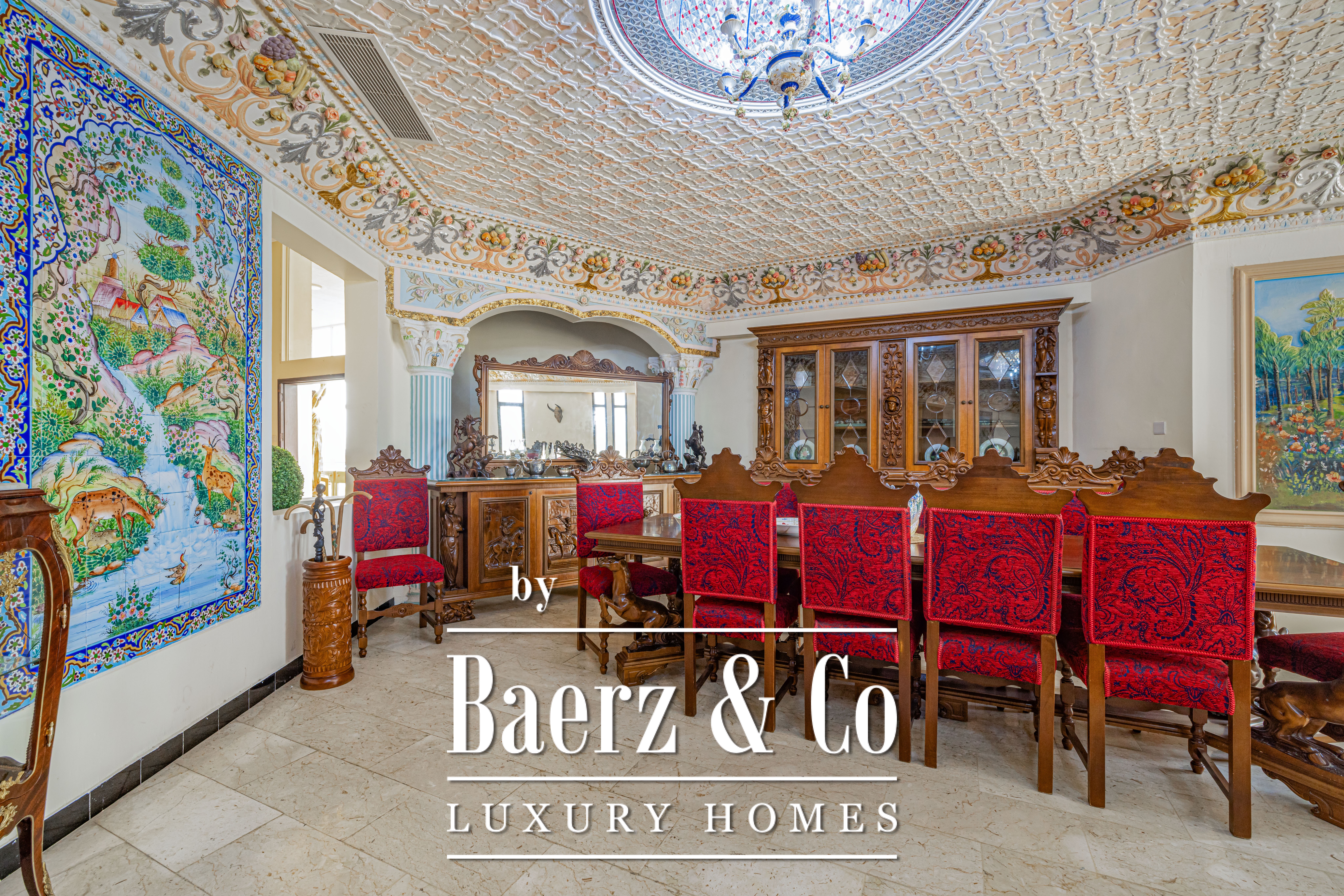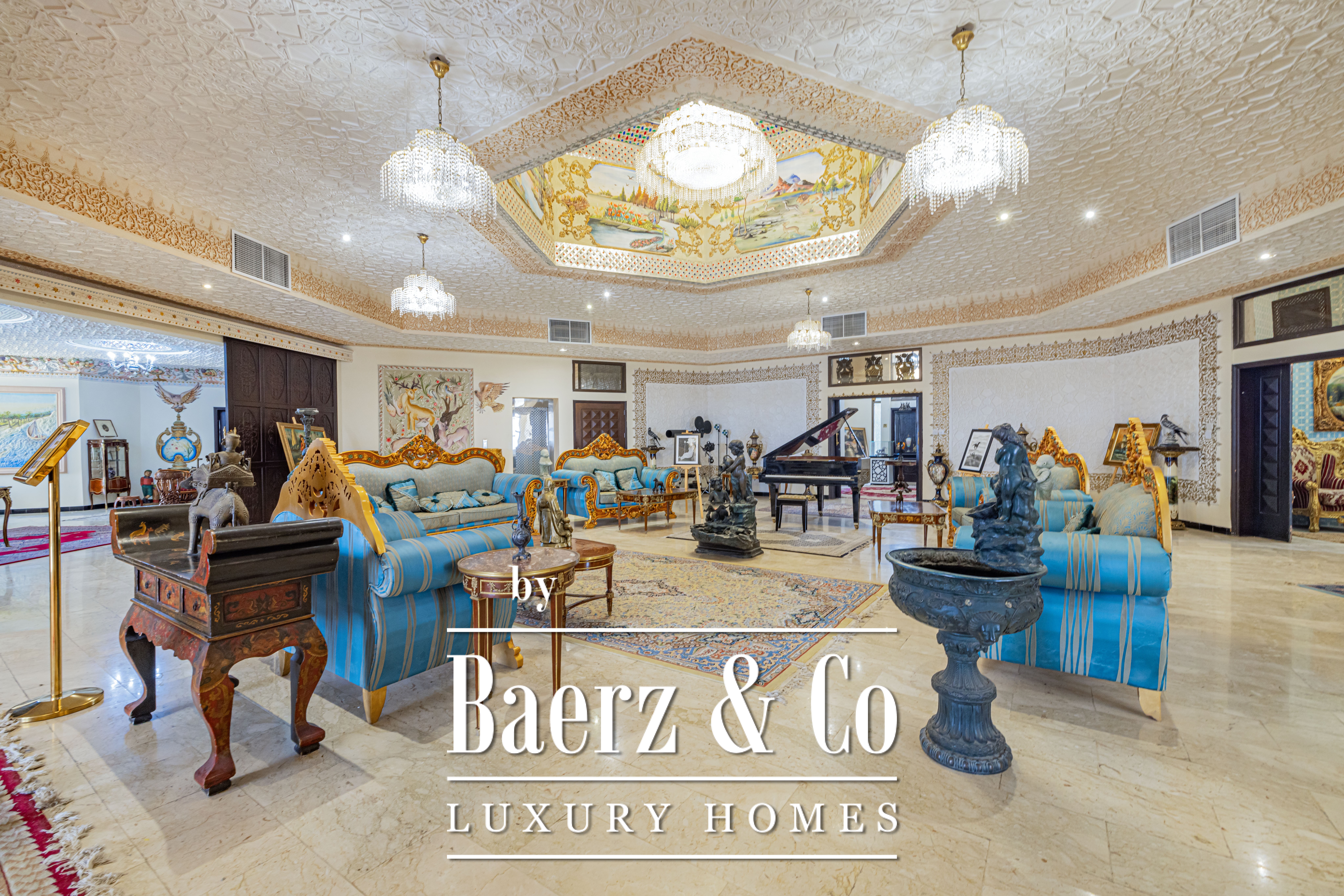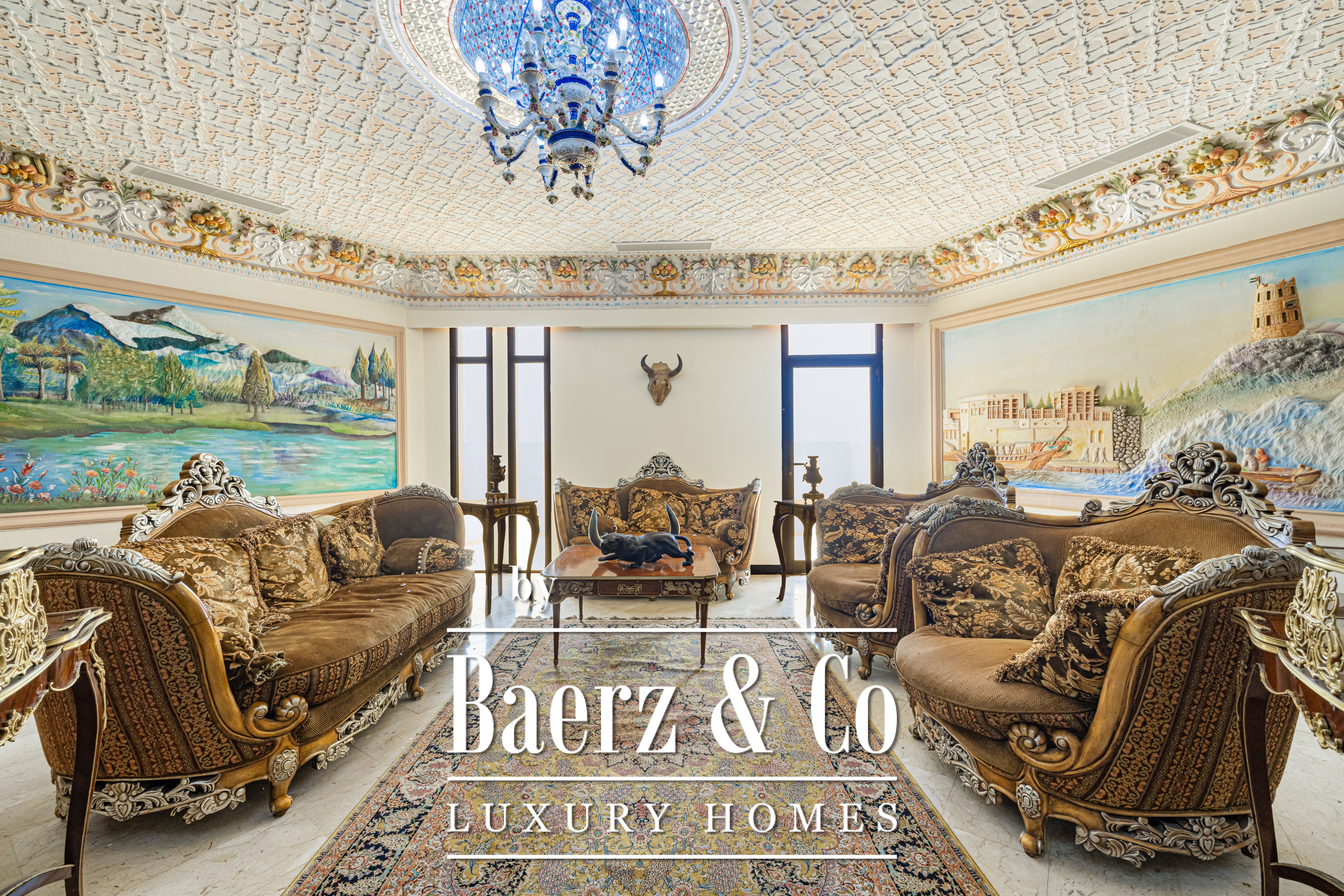Palace Ras Al Khaimah is a property of singular distinction, composed on a prominent hill with a 18580 m² plot and 9290 m² of living area. Once owned by a royal family, this palace is an architectural testament to patience and craft, with the Iranian artist’s dedication spanning 15 years for its creation. Each of the 20 unique bedrooms and 20 bathrooms is a curated space, enriched by historic furnishings and bespoke artworks gathered from Syria, Morocco, India, and China. Hand-painted walls and intricate mosaics evoke an atmosphere of private grandeur.