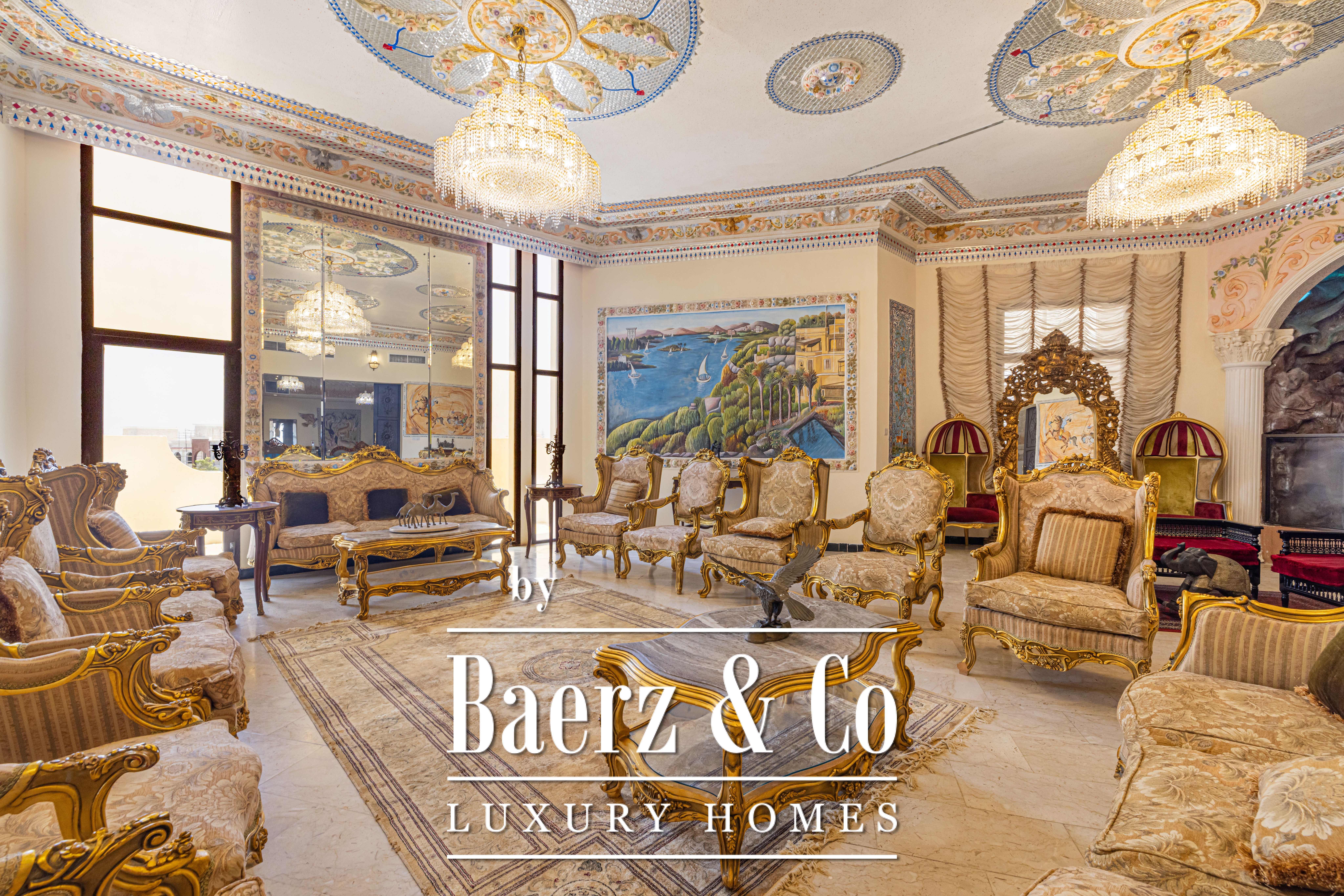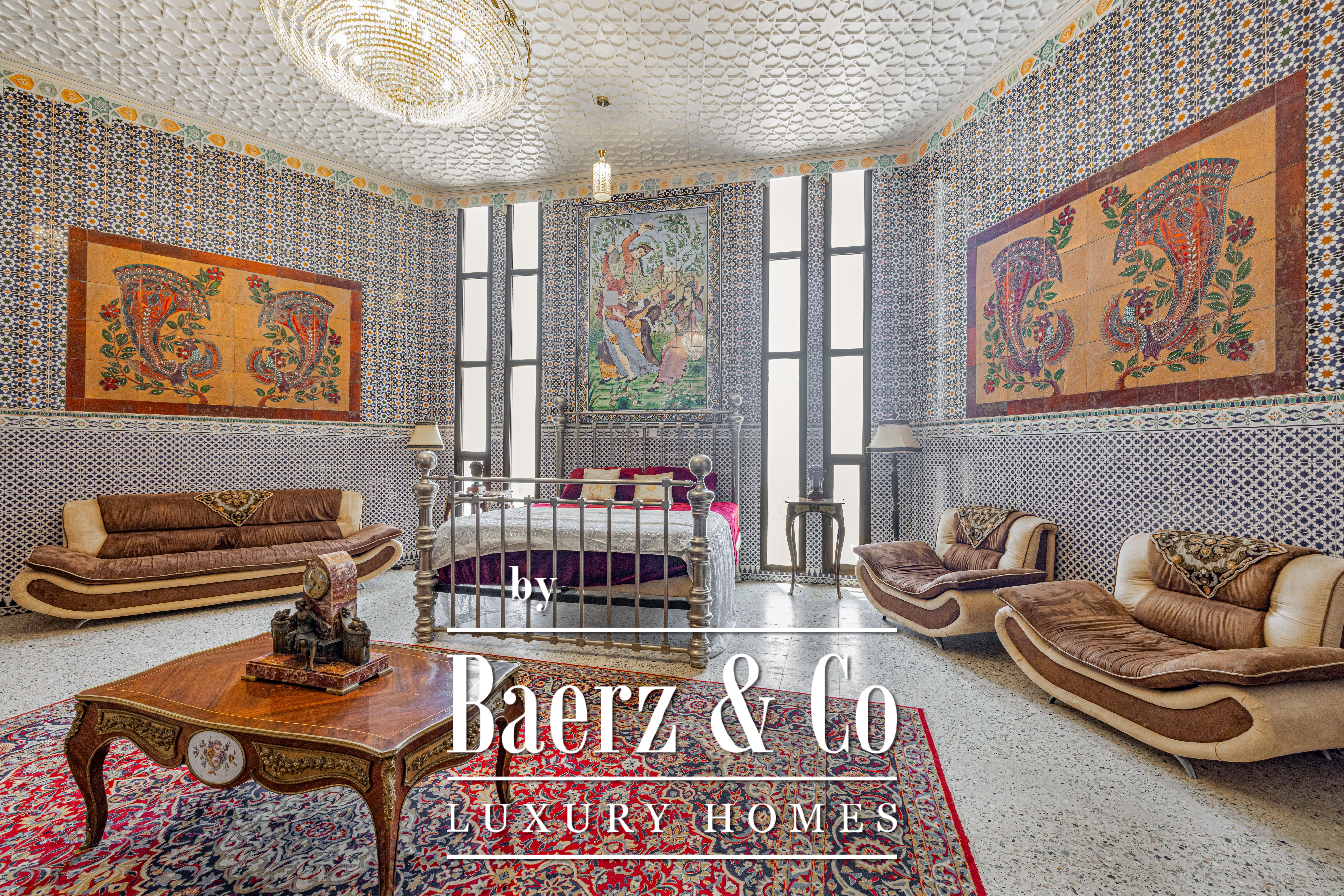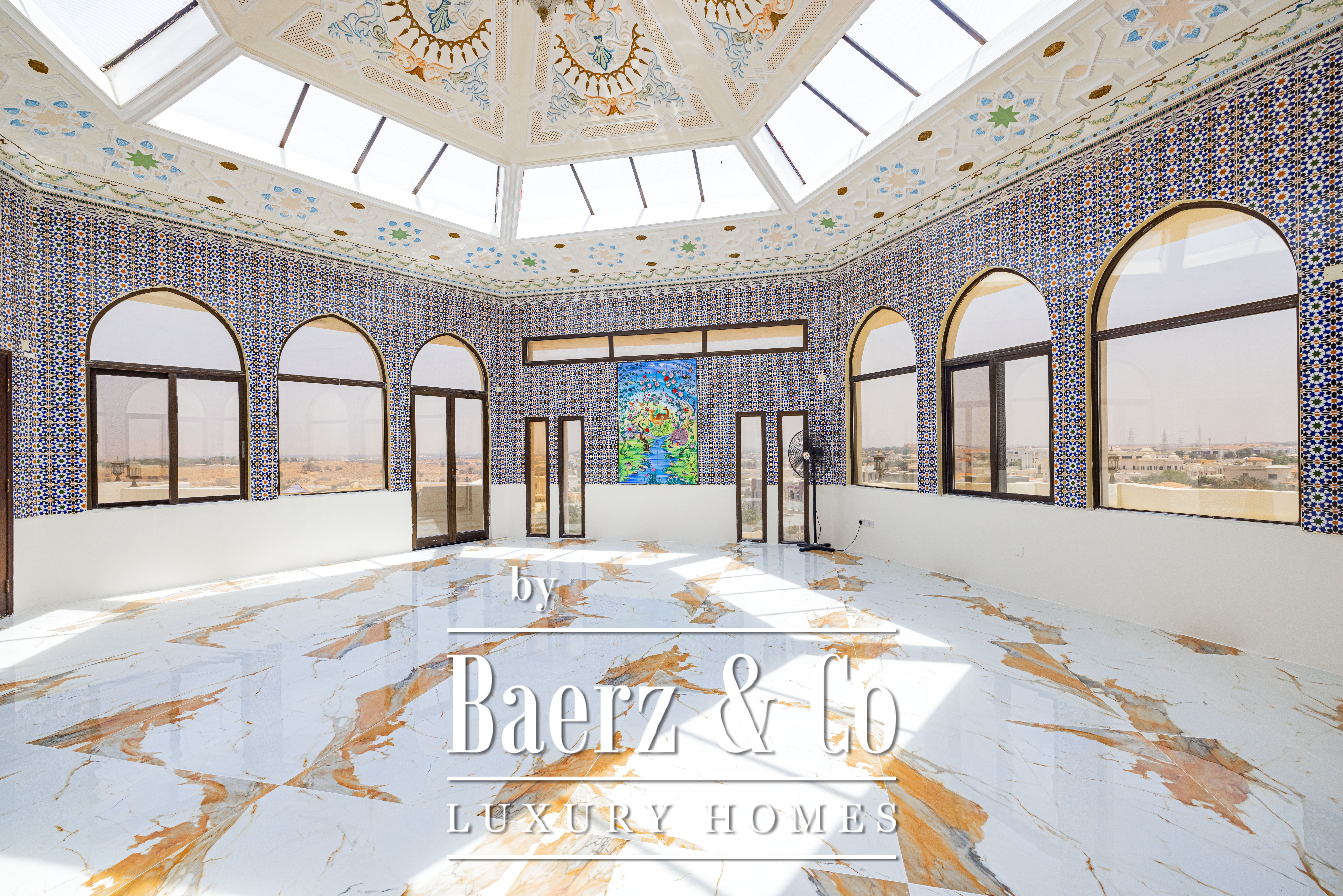 Palace Ras Al Khaimah is a property of singular distinction, composed on a prominent hill with a 18580 m² plot and 9290 m² of living area. Once owned by a royal family, this palace is an architectural testament to patience and craft, with the Iranian artist’s dedication spanning 15 years for its creation. Each of the 20 unique bedrooms and 20 bathrooms is a curated space, enriched by historic furnishings and bespoke artworks gathered from Syria, Morocco, India, and China. Hand-painted walls and intricate mosaics evoke an atmosphere of private grandeur.
