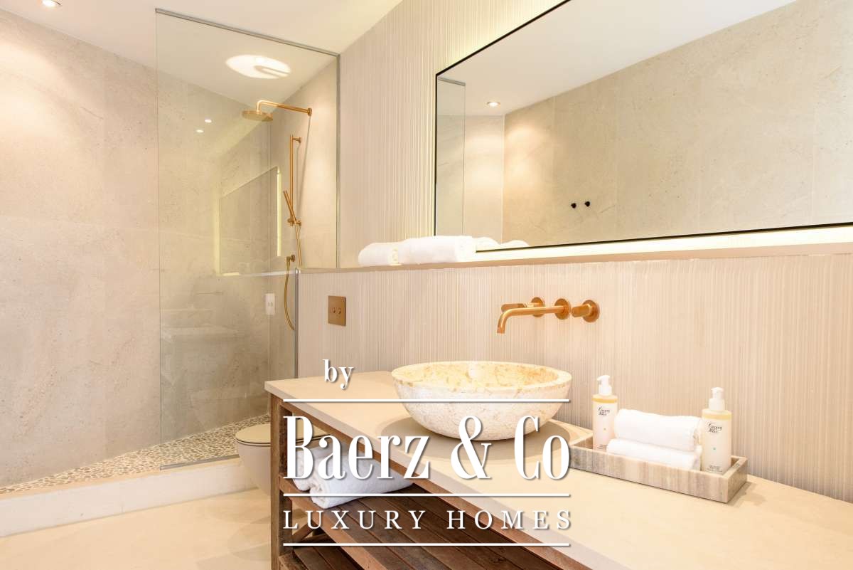 Three further bedrooms below provide en-suite and guest accommodations, while a detached modern casita beside the pool ensures privacy for visitors or staff. Throughout, the ambience is calibrated for comfort: SONOS sound, high-speed mesh Wi-Fi, discreet air conditioning, and an advanced alarm system. The fitness area is fully equipped, inviting personal wellness.