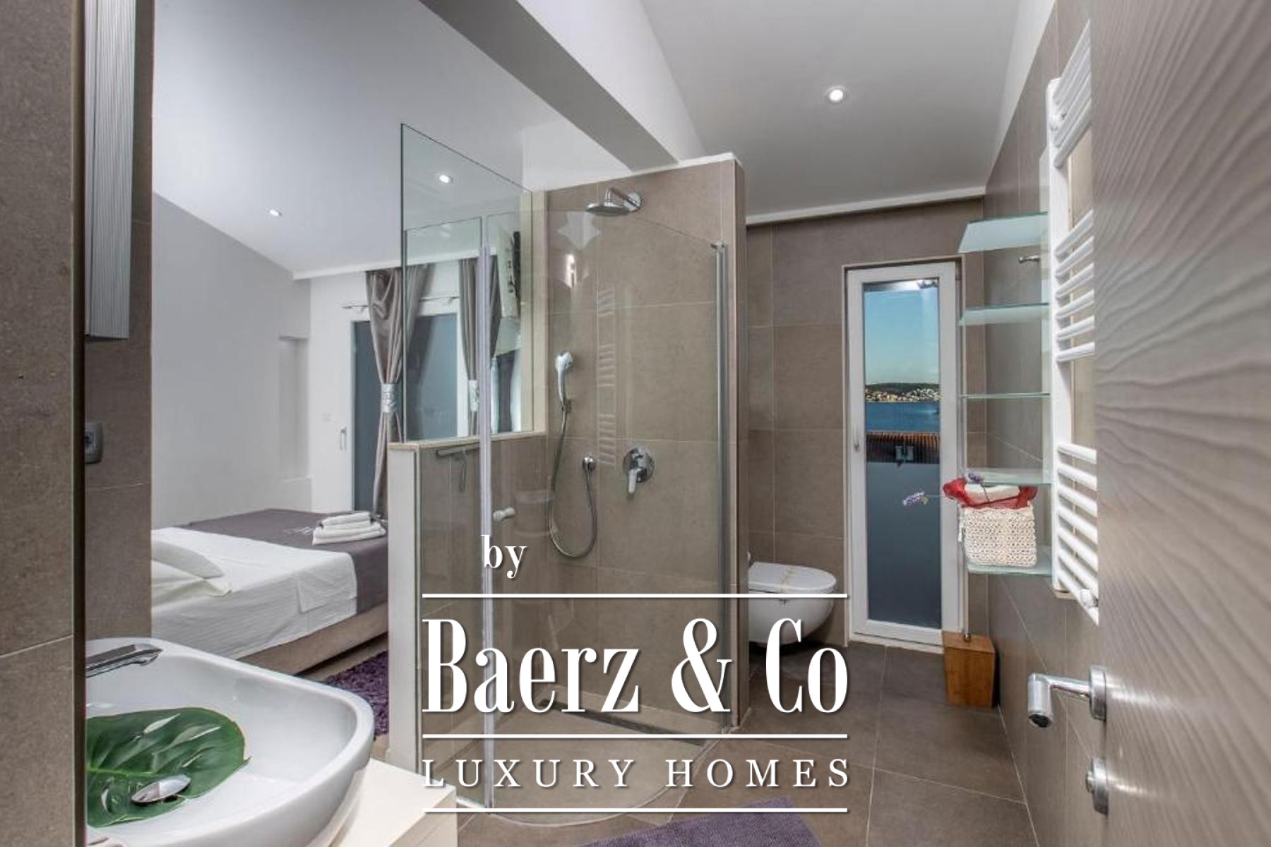 House Rogoznica with sea view and pool offers a measured balance of privacy and proximity to the Adriatic, situated just 100 meters from the beach and a brief walk from the heart of Rogoznica. This property comprises a generous 352 m² living space across two floors, built on a 426 m² plot. Each apartment on the ground floor is designed for autonomy and comfort, with one offering a bedroom, bathroom and living area, and the other comprising two bedrooms, a bathroom, and a living room. Both open onto a terrace beside the pool, inviting moments of quiet or conviviality under the Mediterranean sky.