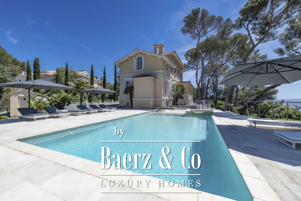 Villa Saint-Raphaël Panoramic Sea View defines an exceptional standard, blending commanding perspective over the Bay of Saint-Raphaël with a rare sense of seclusion. Nestled within a secure domain and set on a generous 2950m² plot, this villa presents 352m² of luminous living space, curated for privacy and ease. The interiors balance openness and intimacy, offering five bedrooms, including a caretaker's apartment, four bathrooms, and an adaptable office space. Floor-to-ceiling windows frame unobstructed sea, garden, and harbor views, infusing each moment with coastal light and tranquil rhythm.