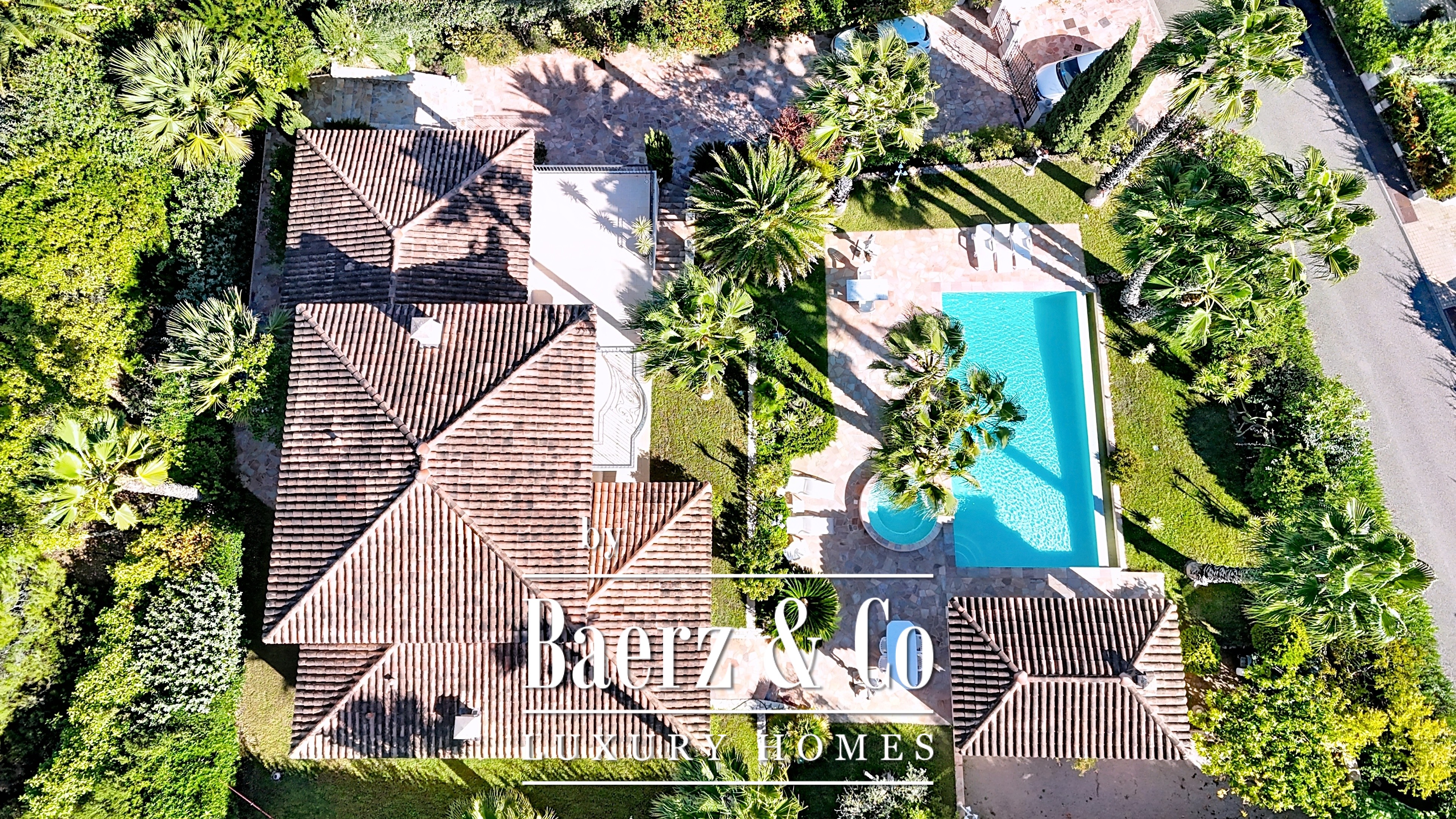 Three additional bedrooms upstairs provide comfortable retreats for family and guests, while thoughtful design is evident throughout each room. Outside, the Mediterranean lifestyle is embodied by an infinity pool, jacuzzi, glass-enclosed pool house with a summer kitchen, and a pétanque court, all set within 1,259 m² of landscaped grounds.