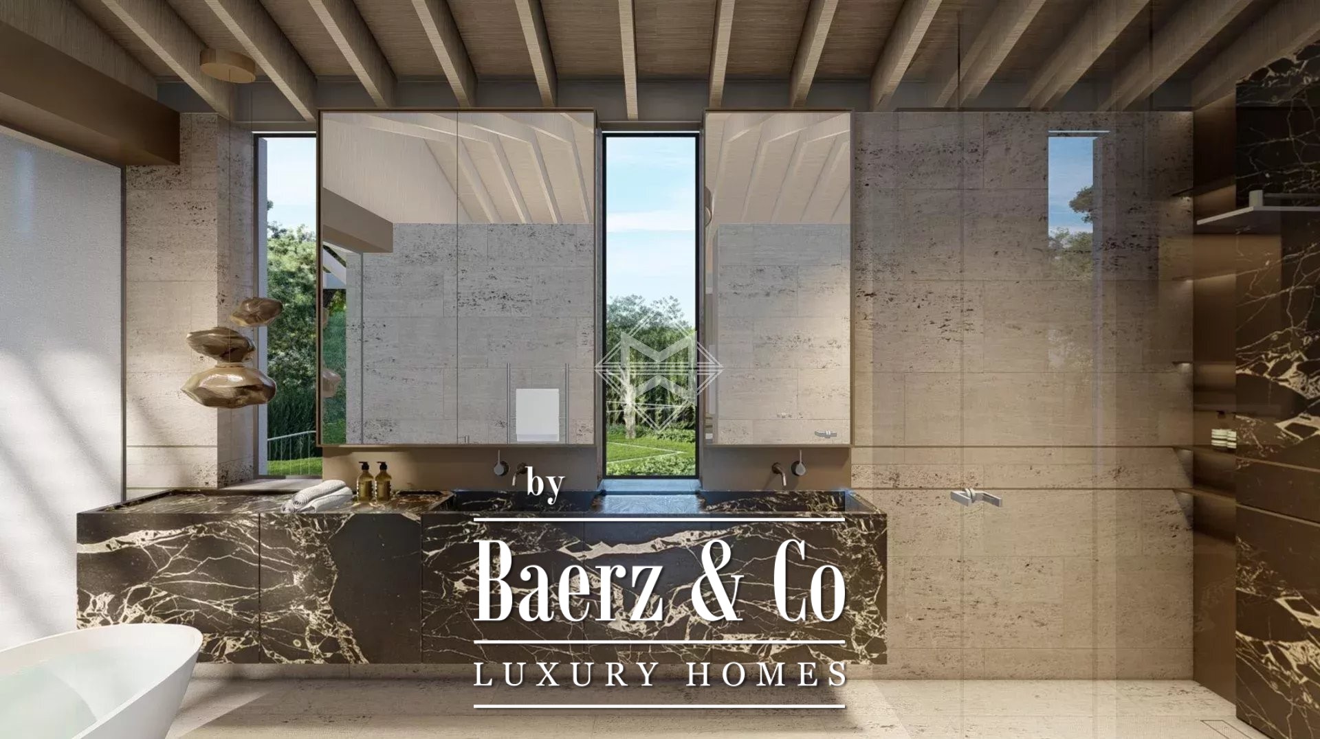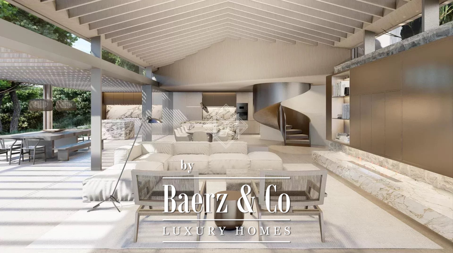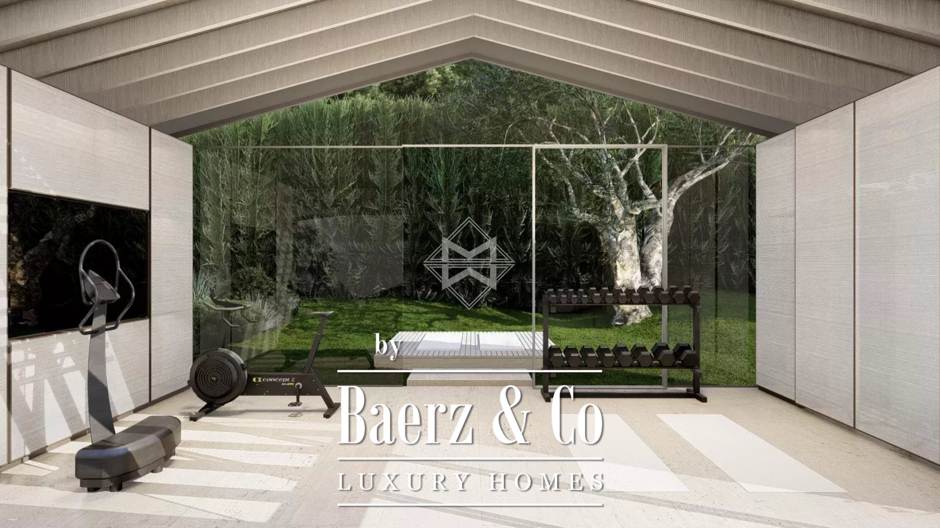 Upstairs, the master suite opens to sea views and features a walk-in closet, bathroom, gym and spa. The basement is dedicated to leisure and wellbeing, comprising a cinema room, wine bar and dance floor, wellness area with sauna, hammam, cold plunge, massage room, and a large laundry space.