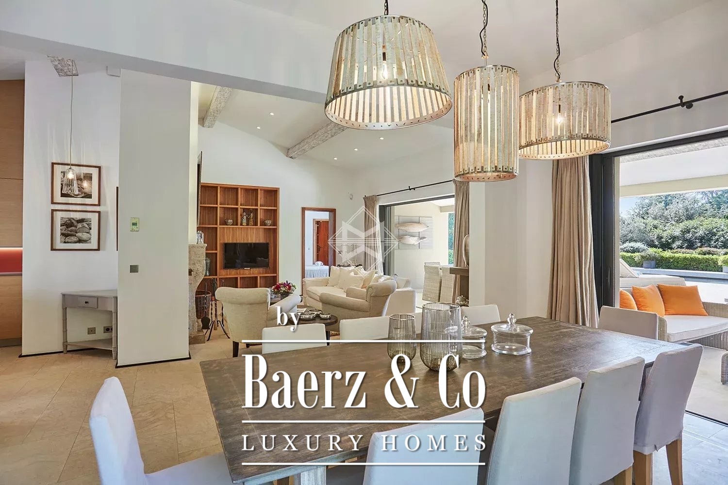 Each of the five en-suite bedrooms is thoughtfully arranged to ensure individual comfort and privacy, while advanced home technologies heighten convenience and security. The villa’s integration with its setting is central, opening out onto 2,387 m² of level grounds framed by dense, mature vegetation. A heated swimming pool forms the centrepiece of the outdoors, positioned for both sun and seclusion, with uninterrupted views across the hills and gardens.
