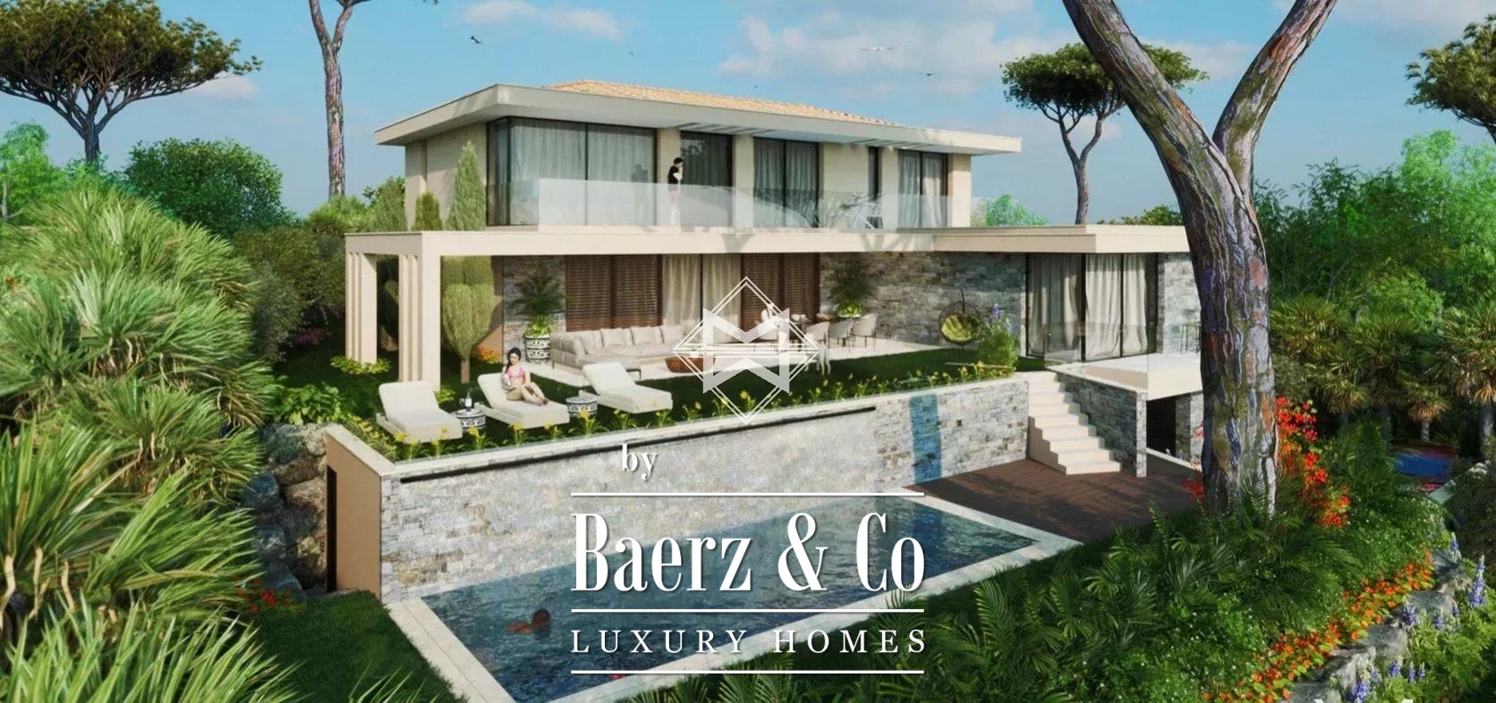 Spread over three levels, the villa offers approximately 288 m² of interior space with four suites and expansive living areas, crafted to transition seamlessly onto south-facing terraces. The 1,067 m² landscaped garden surrounds heated infinity pool that draws warmth from all-day sunlight.