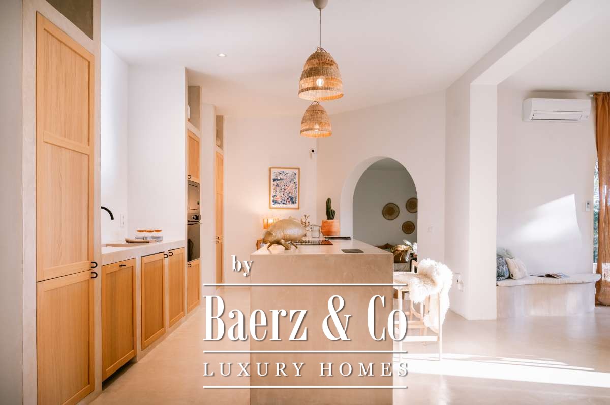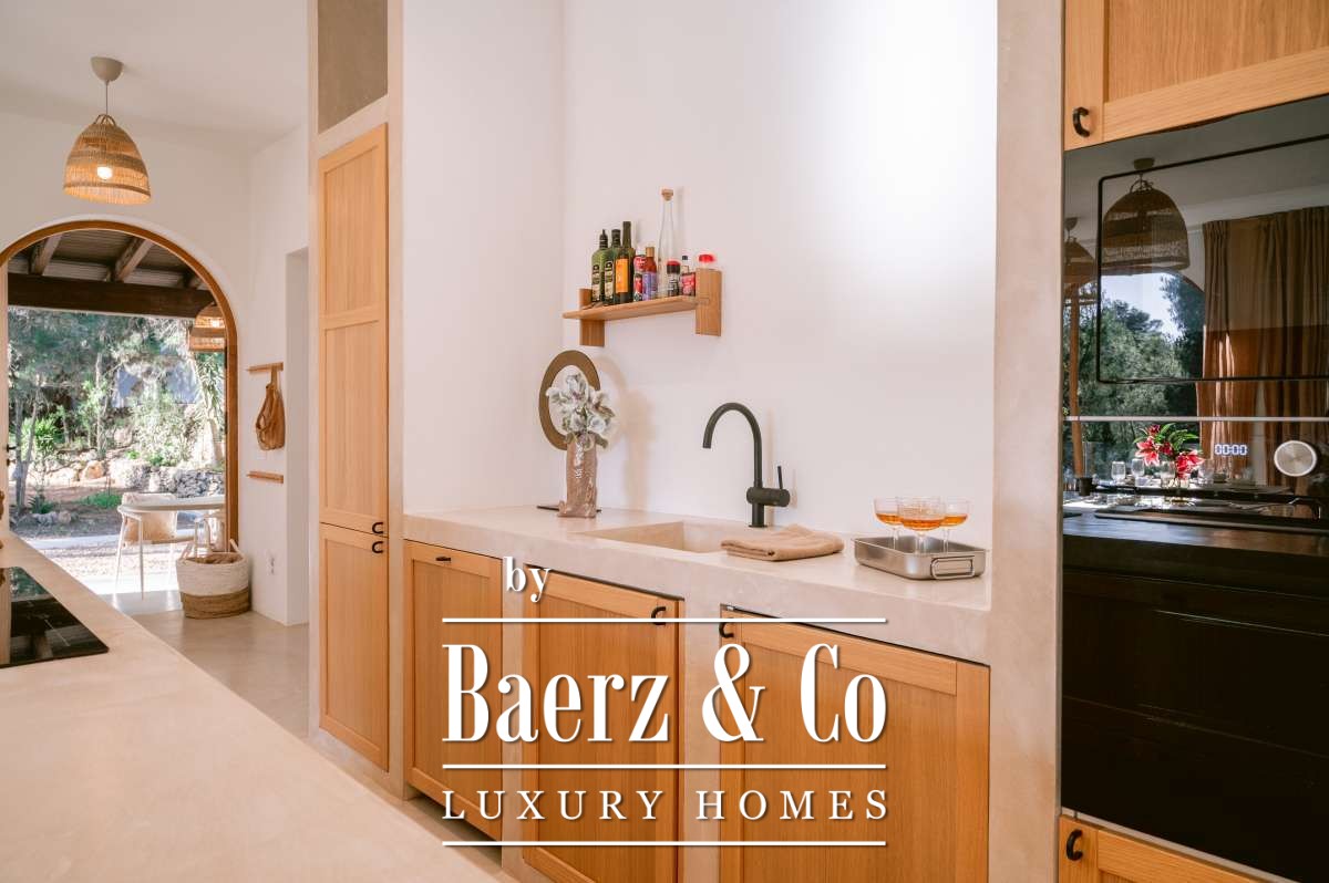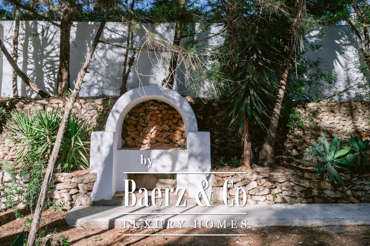 Villa San Agustín Spain connects privacy with effortless outdoor living amid a tranquil forested landscape. This fully renovated villa, with a built area of 175 m² on a private plot of 1,783 m², embraces the enduring spirit of Ibiza while remaining close to local restaurants and some of the west coast’s revered beaches. The setting blends seclusion and centrality, surrounded by the verdant beauty of San Agustín.