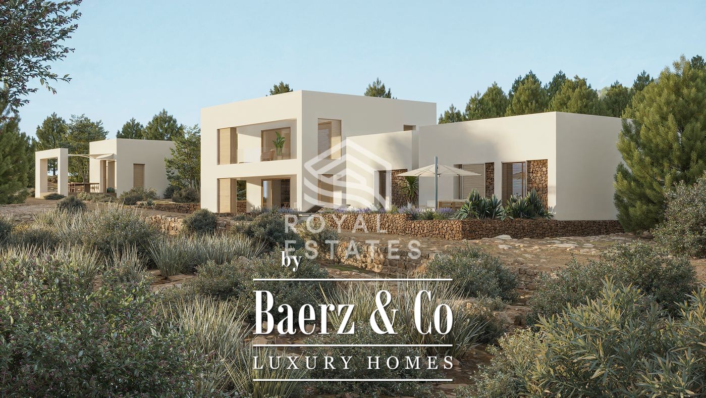 The development concept presents a contemporary take on traditional Ibizan architecture, defined by clean volumes, natural materials and an open flow between interiors and the outdoors. A granted building permit enables a swift move from vision to construction. The planned residence offers approximately 520 m² of built space with five bedrooms and five bathrooms, including distinct suites for family and guests. Interior design centers on abundant natural light and continuous movement between living, dining, terraces and pool area.