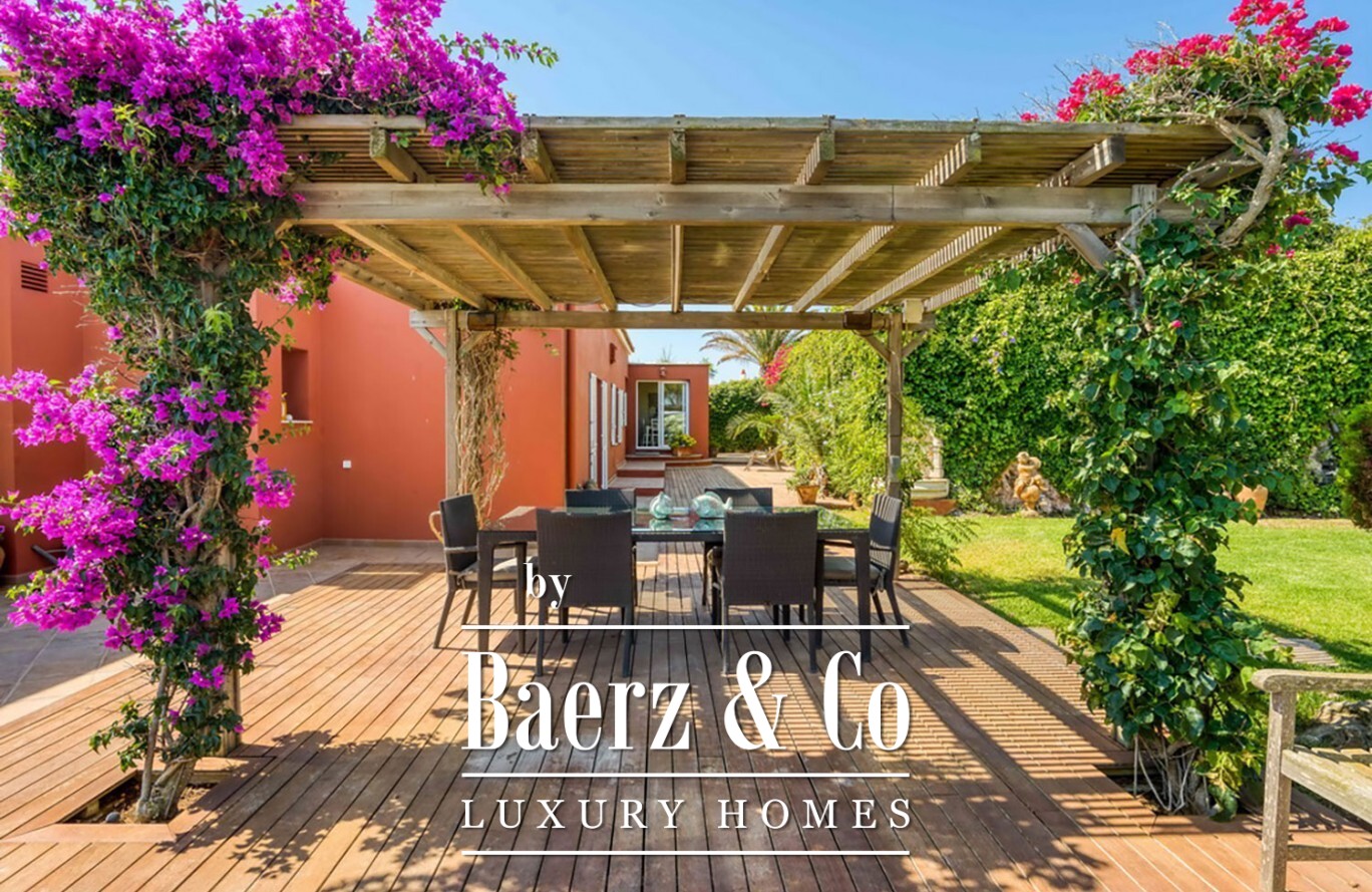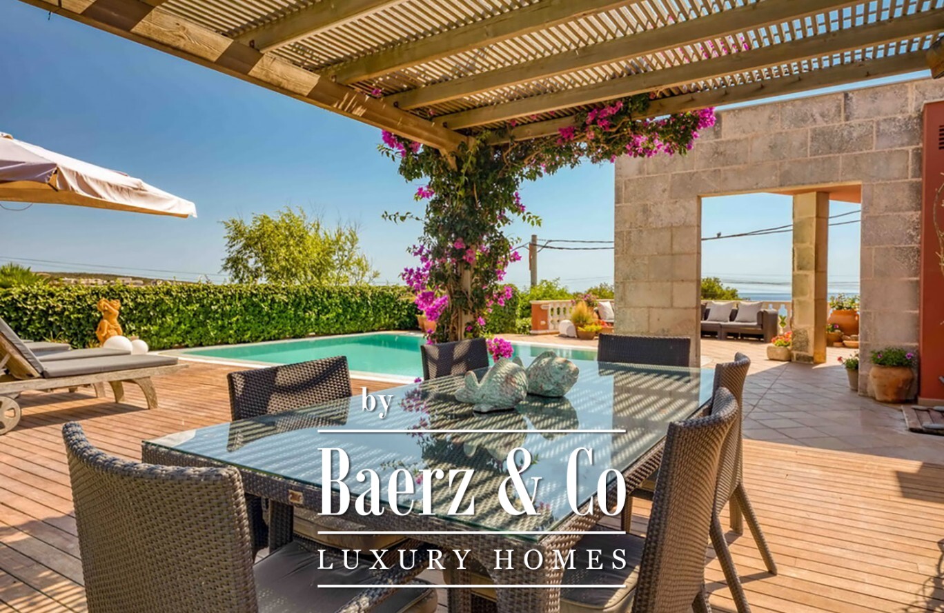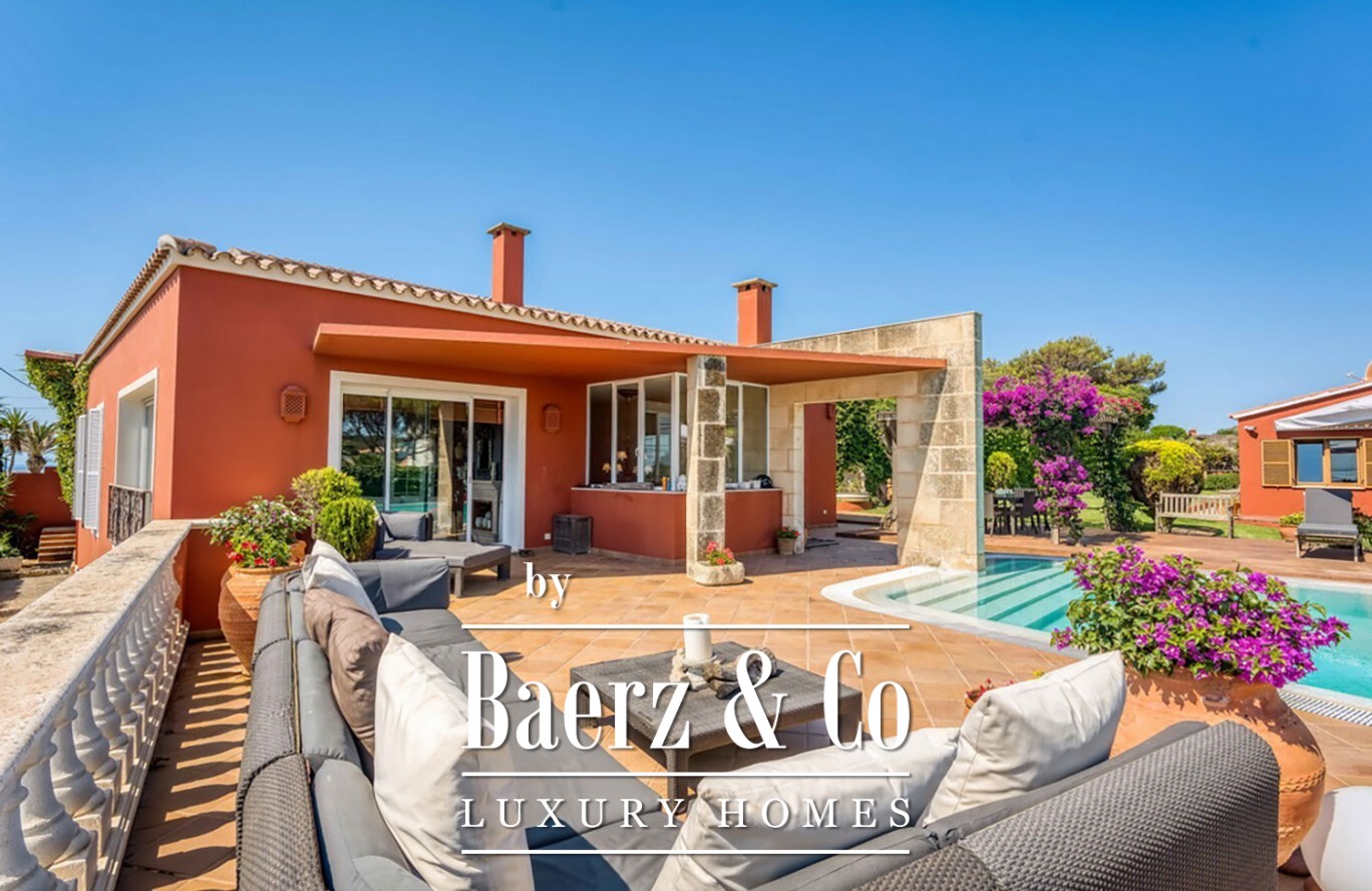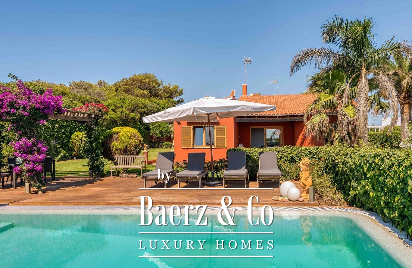 Exclusive villa Sant Lluis invites a rare synthesis of generosity and privacy on the revered South Coast of the island. This luxury villa, spanning 1,502 m² of land and 458 m² of living space, is thoughtfully furnished and impeccably equipped, providing a sense of calm and effortless sophistication. Expansive sea views greet you from the moment you arrive, framed by a private garden and a swimming pool designed for tranquil afternoons.
