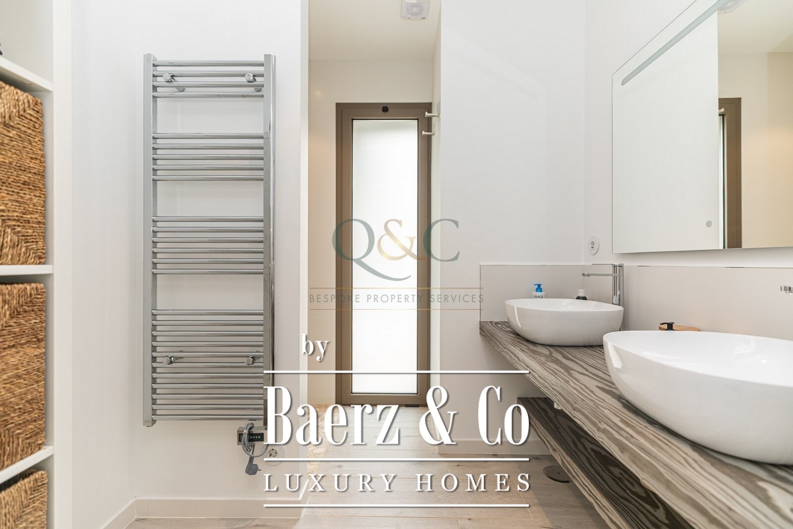 The south villa presents a solitude of calm, hosting one bedroom with fitted wardrobes and an en-suite bath. An open kitchen with island merges with the living and dining area, where a wood burning fireplace anchors the space. Terraces wrap the villa, capturing sea breezes and sunlight, while a covered BBQ area and west-facing outdoor lounge promise seamless indoor-outdoor living. Above, a roof terrace crowns the home, offering panoramic views and a dedicated lounge, with an attic for storage.