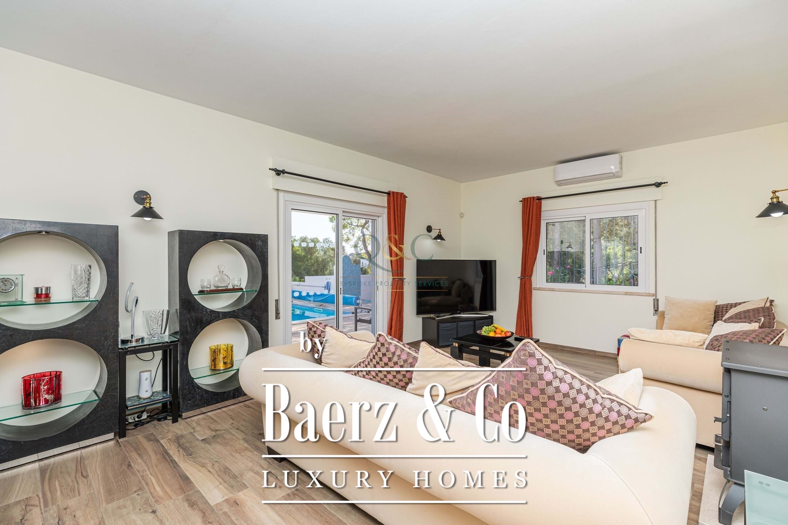 Double glazing, electric gates, and high-speed fibre broadband ensure practical ease. Outdoor living centres around a heated pool, spacious terraces for alfresco dining, secluded garden retreats, and mature olive, lemon, and orange trees, all enclosed within a fenced plot. The detached garage, workshop, and ample parking further support a considered lifestyle. This villa engages the pace of country living while being a short drive from restaurants, markets, schools, and cultural life in São Brás de Alportel, known for its gentle topography and robust local community.