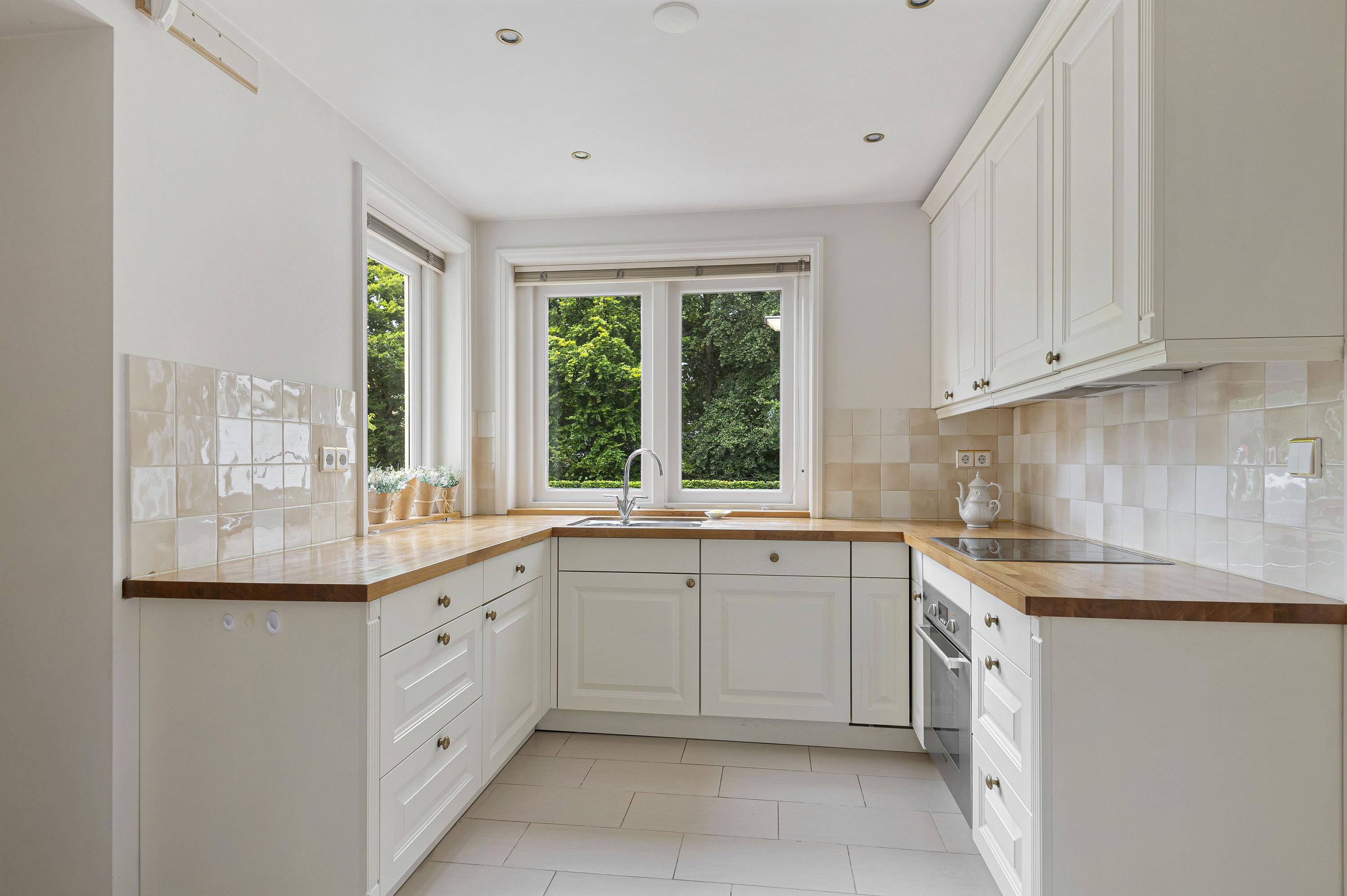 Beautifully landscaped garden with two driveways, several terraces and offers plenty of space for children to play. The garage has a separate toilet and offers enough space for the car. There is also an additional garage at the rear, which has an area of about 16m².