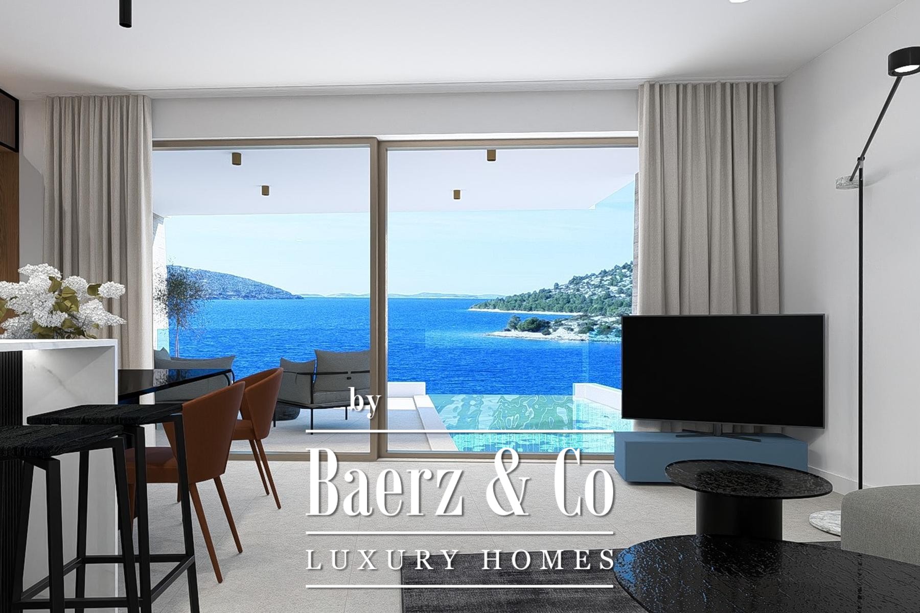 The apartment Šibenik - Okolica presents a contemporary penthouse retreat set directly along the Adriatic, offering 91.33 m² of net usable area enhanced by uninterrupted sea views. This apartment occupies the second floor of a modern, low-density complex, limited to just nine residences, ensuring privacy and exclusivity. The light-filled living room connects to a kitchen and dining area, framed by a spacious terrace of 17.05 m², inviting nuanced transitions between indoor and outdoor living. Two bedrooms provide discreet sanctuary, one with direct balcony access. The property includes a bathroom, a separate toilet, and integrated underfloor heating, complemented by air conditioning in every room for year-round comfort. A defining feature is the private rooftop terrace that spans the entire roof, hosting a swimming pool and sunbathing area, forming an elevated platform for Mediterranean views. Residents benefit from a garage parking space, a basement storage room, and building amenities including a lift. Direct proximity to the sea, just 40 metres away, foregrounds a lifestyle closely tied to the coast and the measured rhythm of seaside living. This luxury apartment in Šibenik - Okolica is an exceptional seafront residence for those who value design, tranquility, and the Adriatic light.