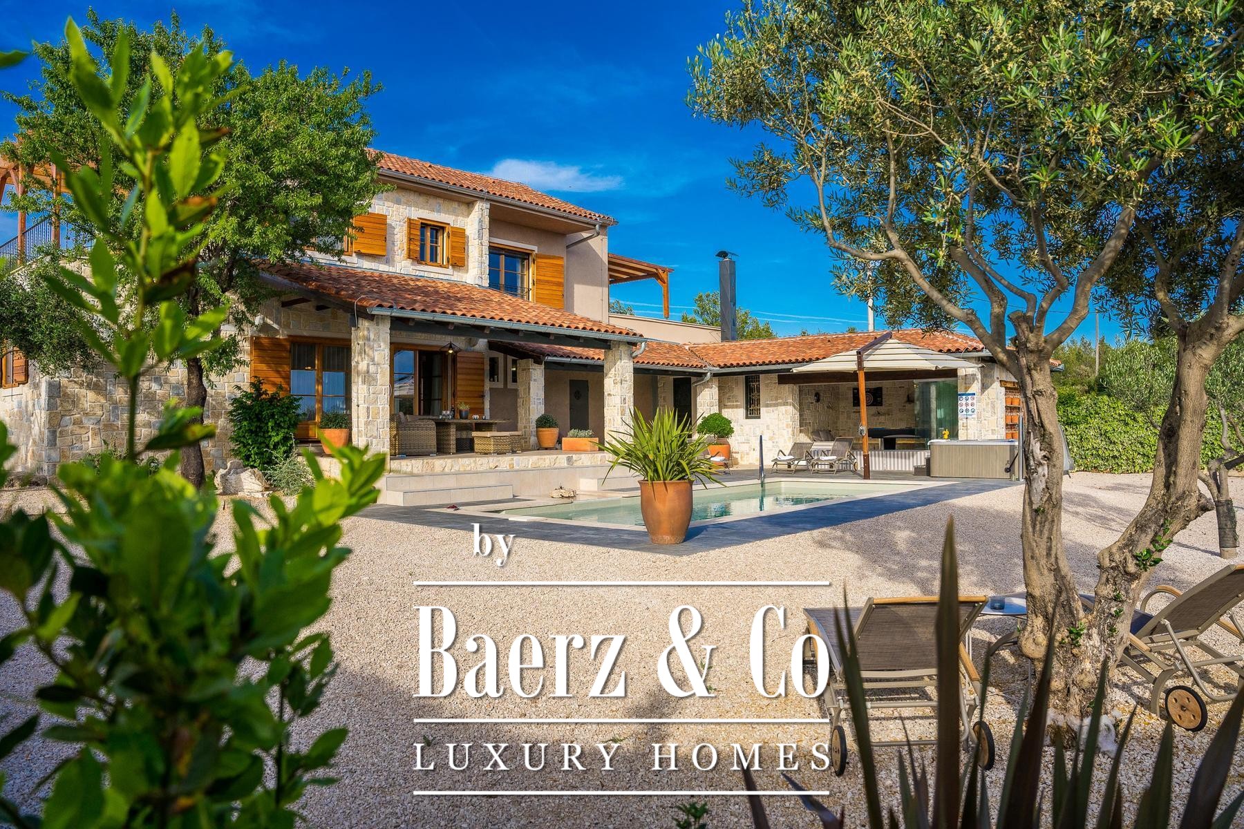 Beyond the villa, a tavern with fireplace, a glass-walled games room opening toward the pool, and a sports court set the rhythm for gatherings and leisure. Every room includes air conditioning, while bathrooms feature underfloor heating. The equipment list includes high-end appliances, video surveillance and a sound system. With only 150 meters to the sea, this stone villa Šibenik promises a discreet lifestyle anchored by privacy, quality and the enduring allure of Mediterranean living.