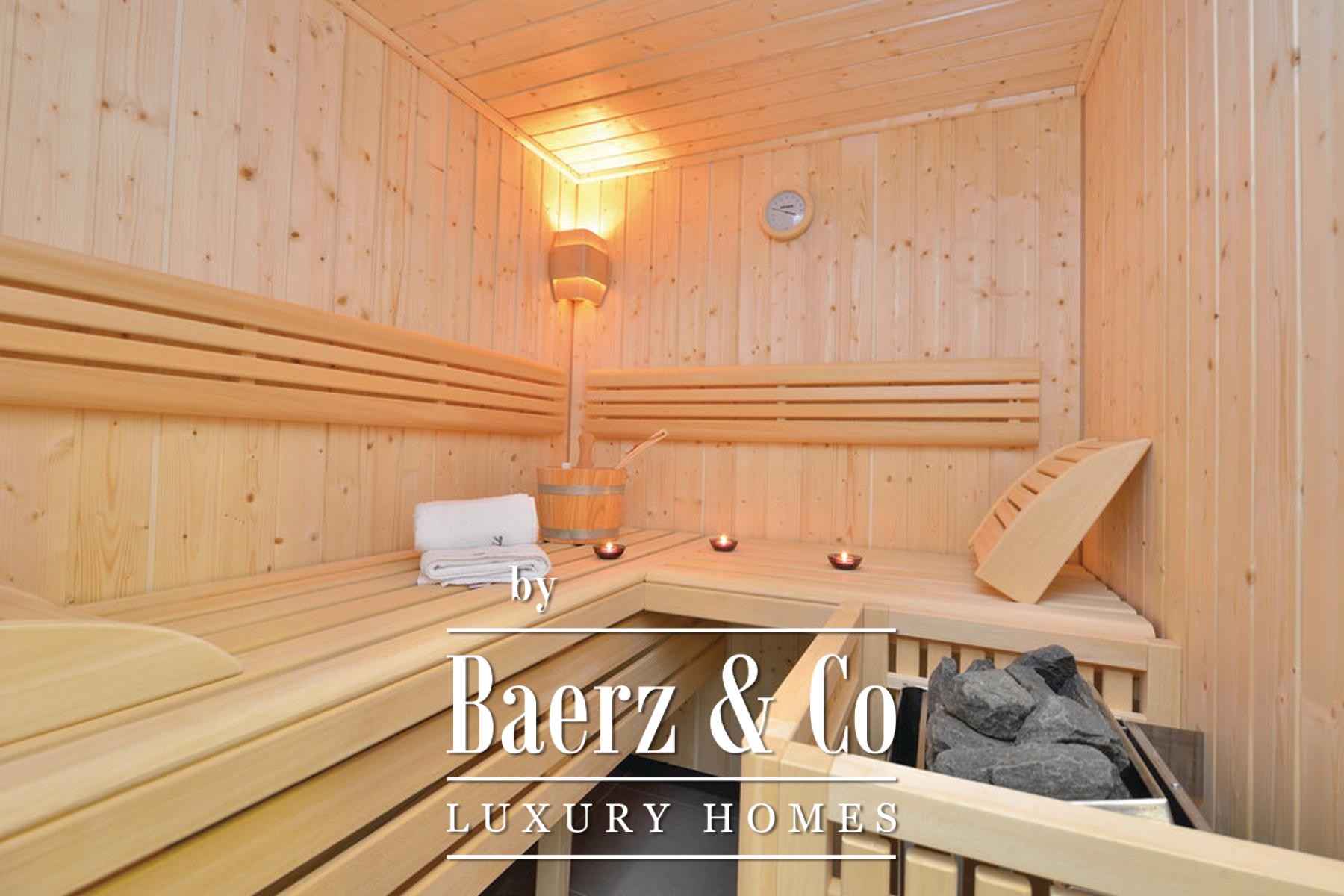 The ground floor welcomes with a living room, dining area and kitchen, each arranged to take in views and natural light. The living area flows to deep terraces beside the swimming pool, sundeck and jacuzzi, inviting relaxation at any hour. Interiors include a ground floor bedroom with private bath, plus dedicated spaces for laundry and convenience. Upstairs, three additional bedrooms with en suite bathrooms and private terraces offer retreat, complemented by a sauna and pergola-shaded outdoor spaces.