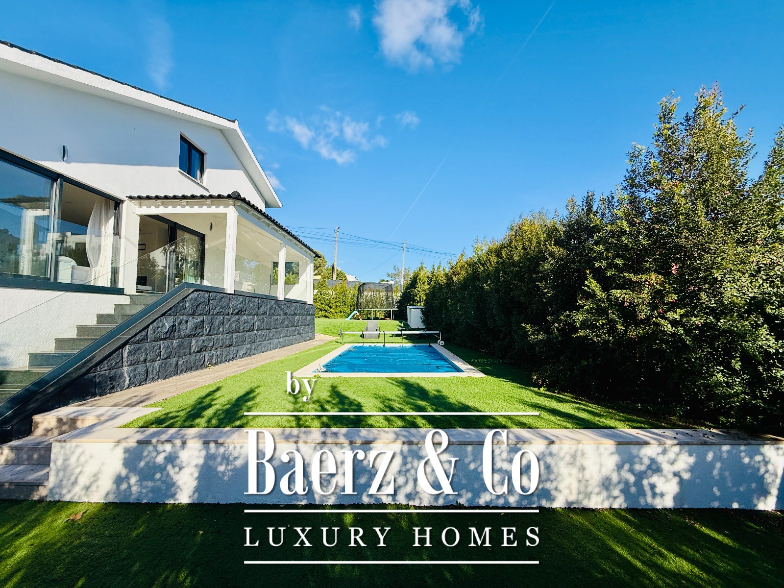 This house Sintra harmonizes contemporary renovation with a sense of privacy and calm, occupying 357 m² on an 868 m² plot. Natural light moves from east to west throughout its three levels, each thoughtfully arranged for both family life and quiet retreat. The ground floor offers a guest bedroom, additional bedroom, storage with a window, a laundry room, and an internal garage for one car. Upstairs, an American-style kitchen with a double refrigerator supports entertaining and everyday rhythm. The adjoining dining and living spaces feature a fireplace and open onto a terrace that leads directly to the heated swimming pool and garden. Two bedrooms on this level provide fitted wardrobes and are served by a well-appointed bathroom. The upper floor holds a principal suite with a walk-in closet and private bath, another suite with wardrobes, and an extra room for flexibility. Air conditioning throughout ensures comfort in every season, with the living spaces quietly set along a tranquil street. From here, Tasis School is ten minutes away, Caisl School twelve minutes, and the center of Lisbon within twenty-five kilometers, connecting daily life to the best of Sintra and the Portuguese capital. This house for sale in Sintra brings together refined practicality with understated elegance.