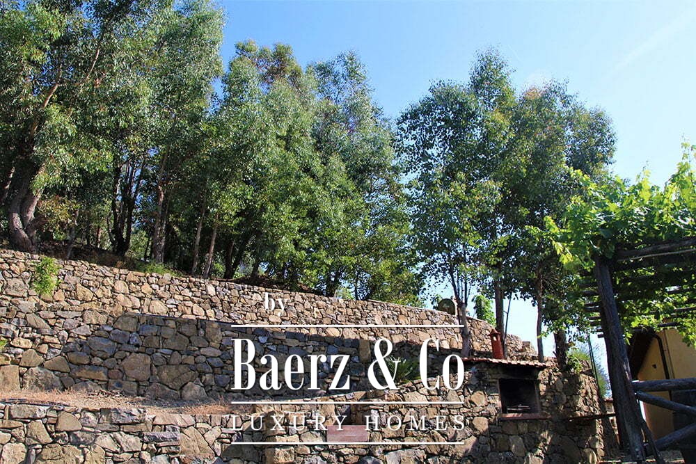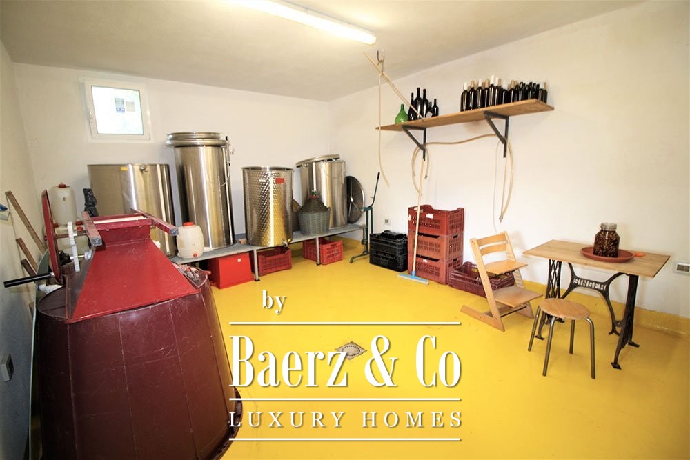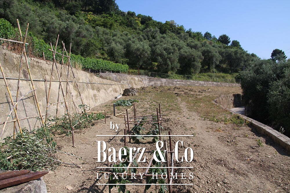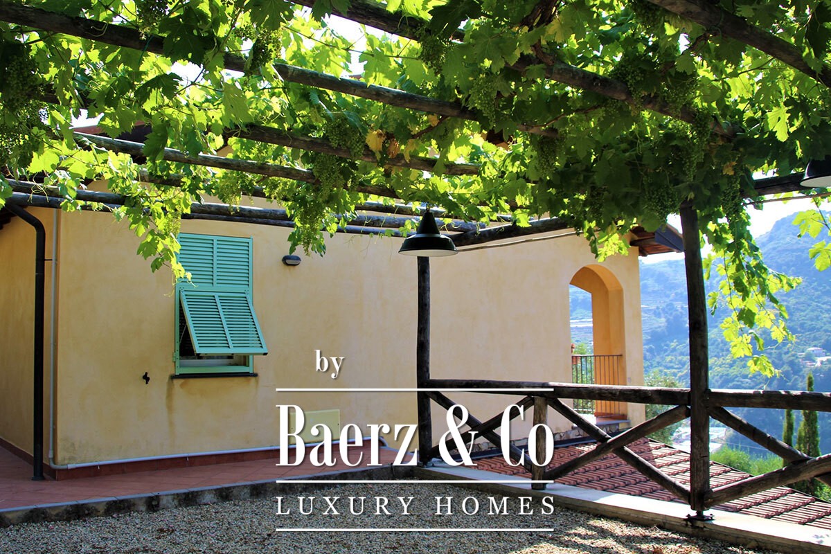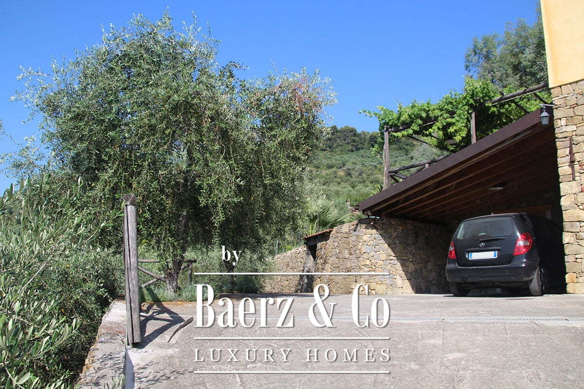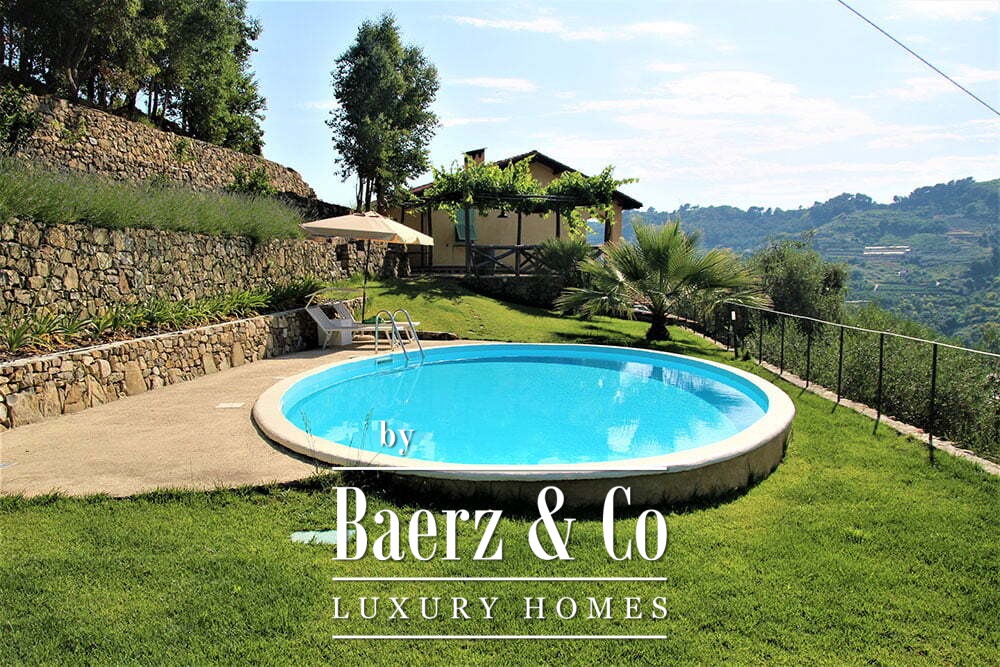 The ground floor, at 100 m², opens possibilities. It is currently dedicated to the traditions of Rossese wine and olive oil production, housing a second bathroom and kitchen with direct access to a shaded porch. This level may be transformed into additional bedrooms or a guest residence. Across the grounds, a round swimming pool is set among fruit trees, a vine-draped pergola, a vibrant olive grove, and a 1,000 m² vineyard. The terraced garden is a place for quiet retreat or convivial gathering. The plot allows further development with the option to add a 50 m² guest house.