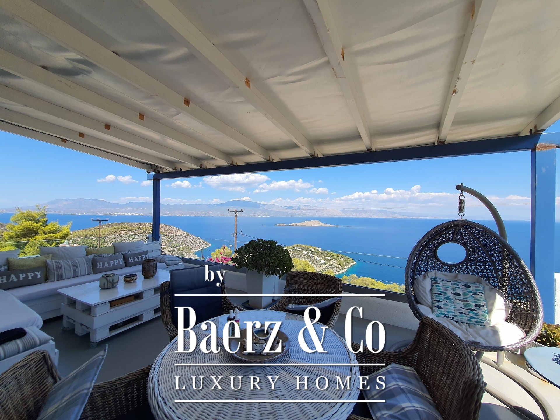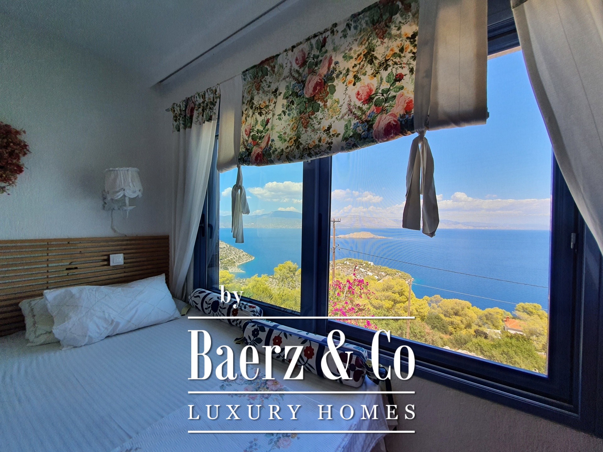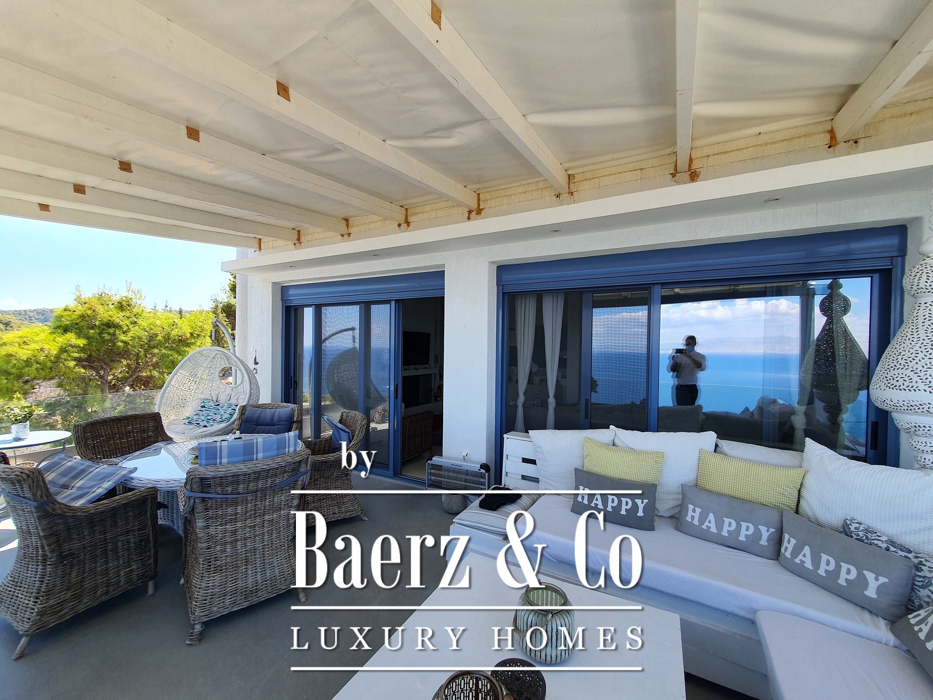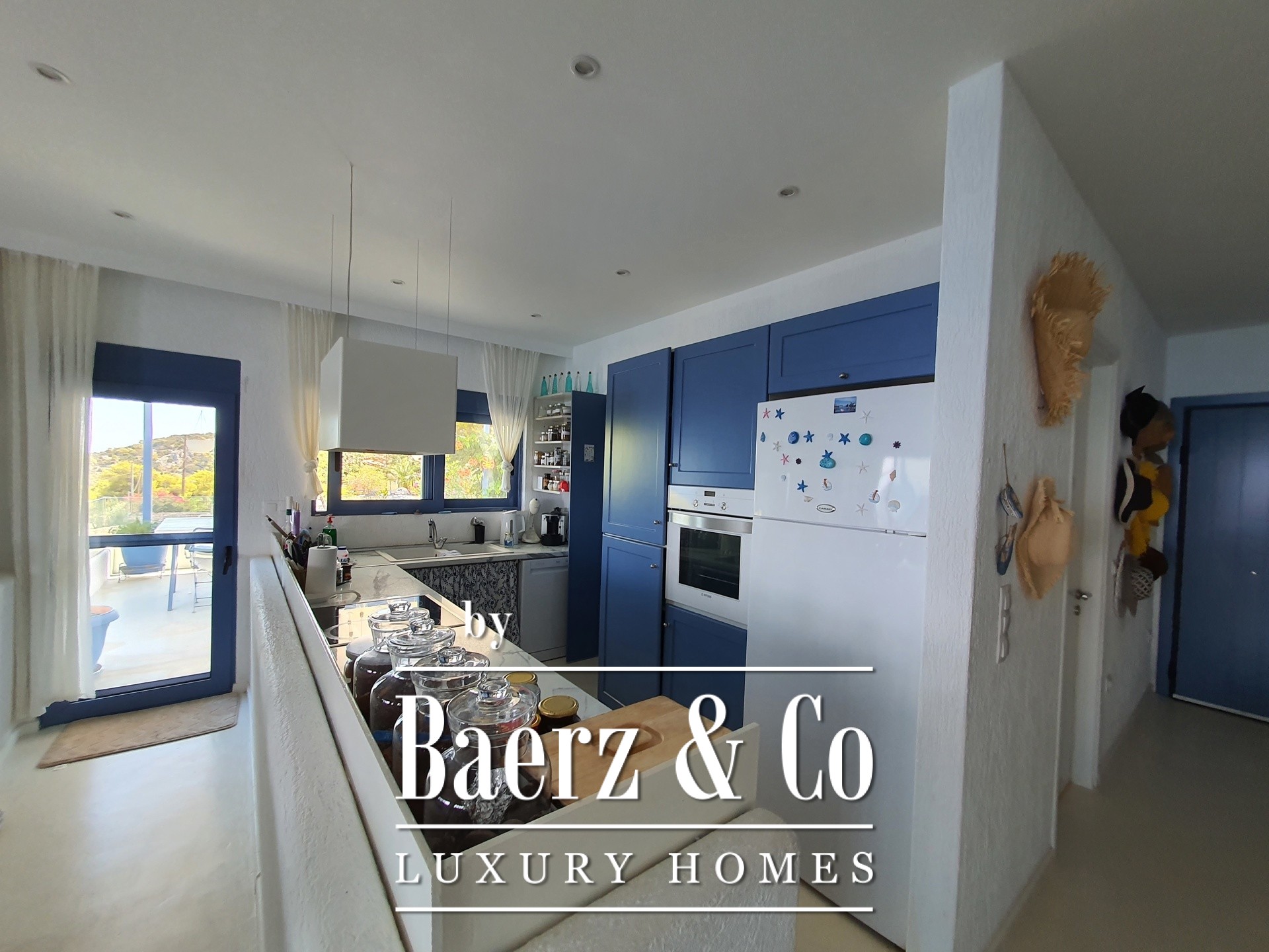 A 100 m² storage area at the rear allows scope for further independent accommodation. The property is secured with a security door and alarm system, features double-glazed insulation, and autonomous climate control across levels. Beyond its structural quality, the villa’s calm setting and breathtaking outlook affirm its rare sense of place. This luxury villa for sale in Soligeia provides discreet, timeless living within one of Greece’s most quietly desirable coastal enclaves.
