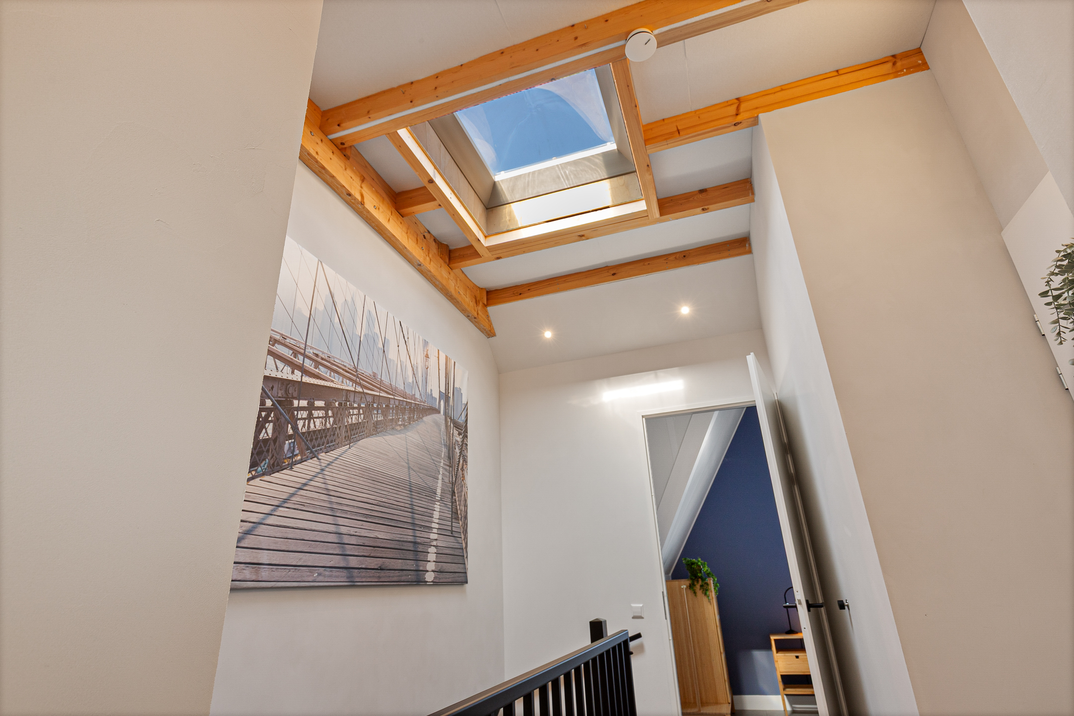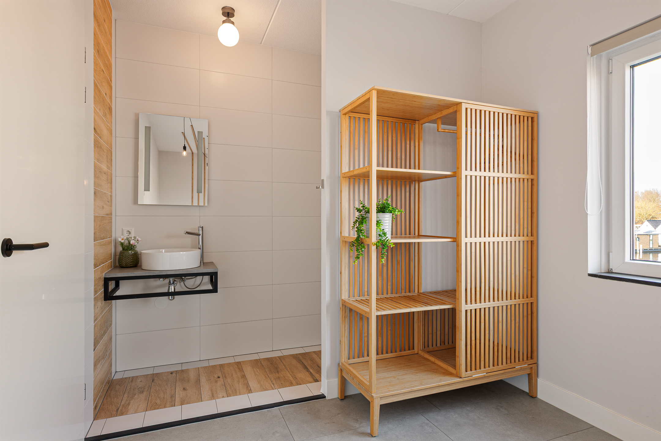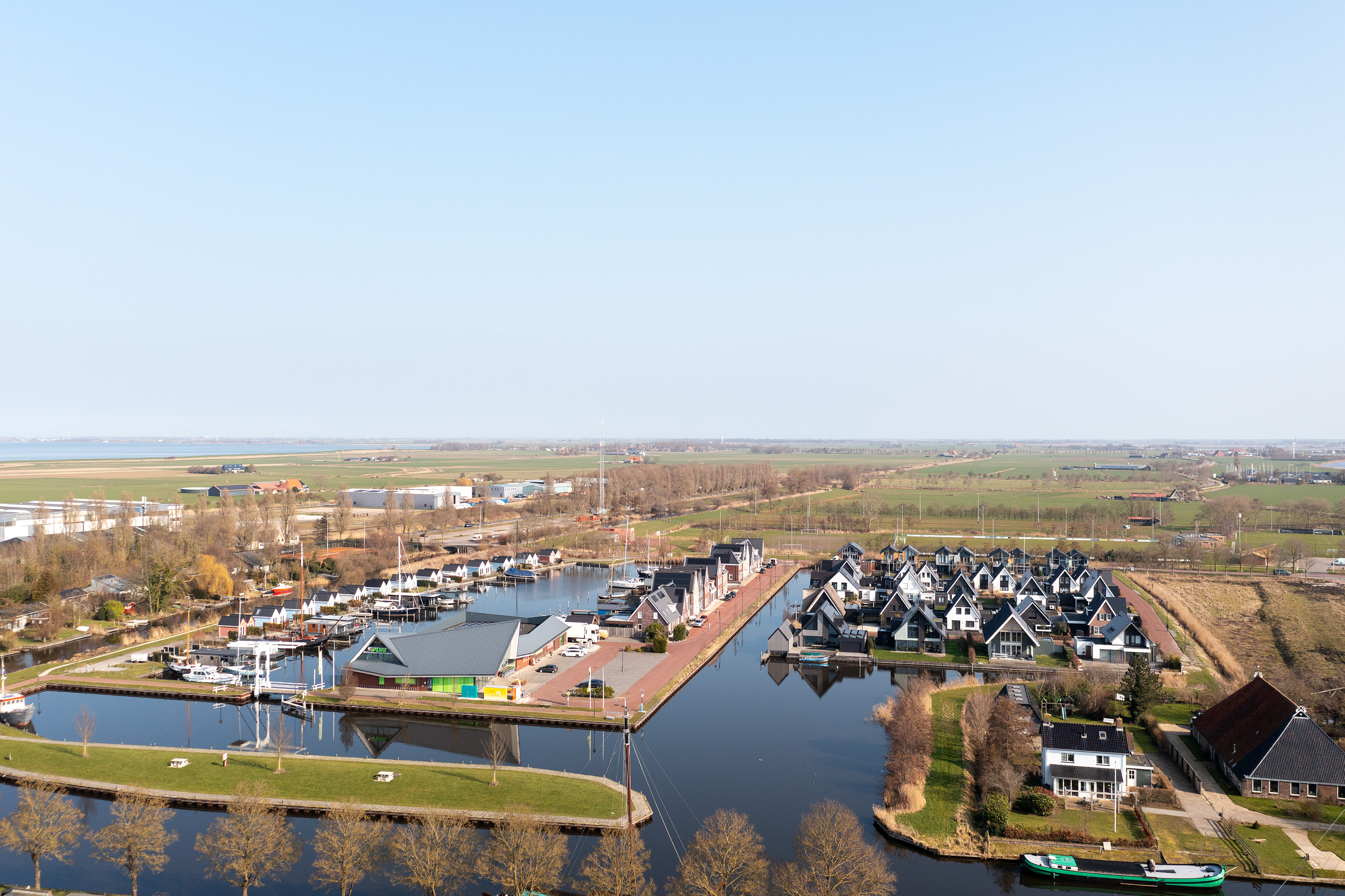 Outdoor living is centred around a northwest-facing garden with protected terrace, a wooden covered area with storage, and a shared jetty with swimming ladder—providing seamless access to Friesland’s extensive waterways and the IJsselmeer. The private mooring measures about 13 by 7 metres, ideal for a sailboat or motorboat. The property benefits from 27 solar panels, a heat pump with boiler, and full insulation for maximum efficiency.