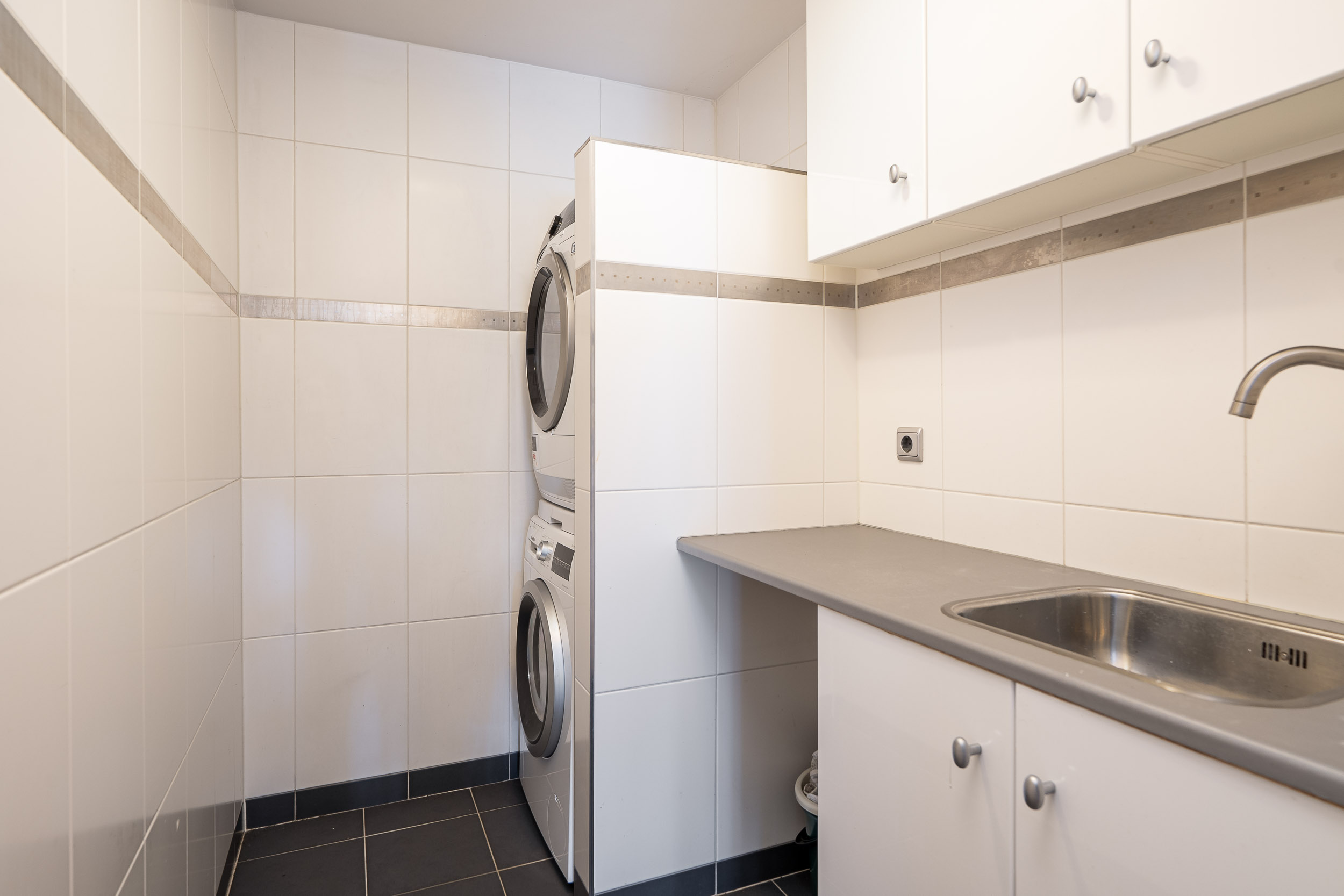 Upon entering, the sense of space in the hallway is immediately noticeable. The hallway provides access to the guest toilet, utility room, meter cupboard, and staircase.