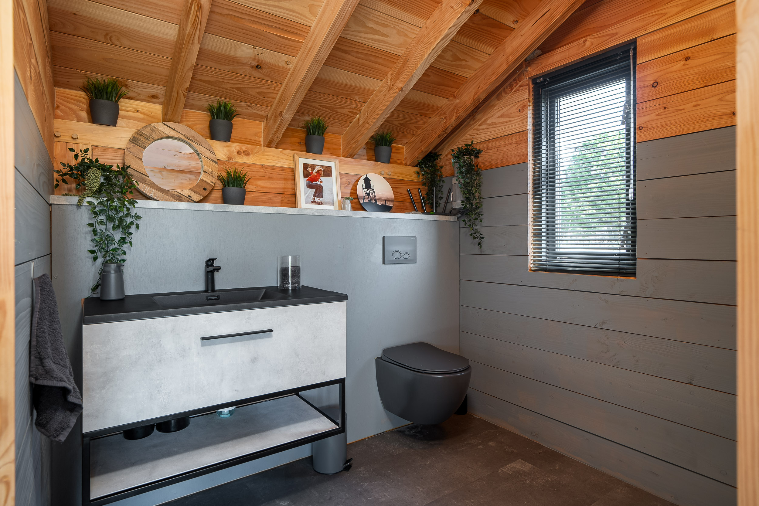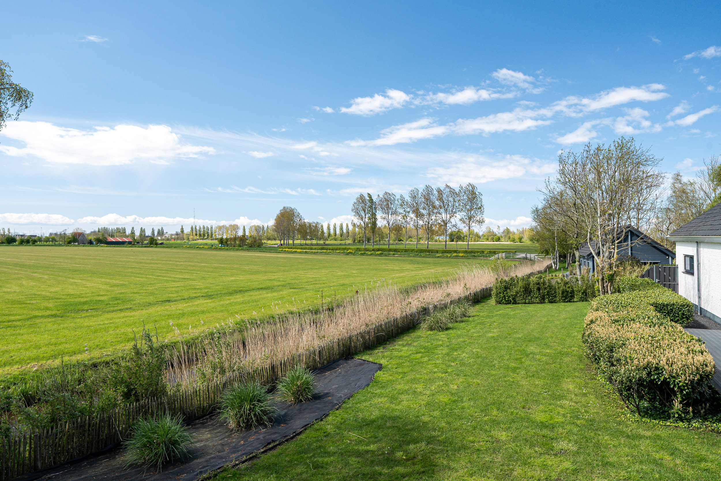 A recently built fully insulated guesthouse, studio, or home office is located in the garden. It includes a kitchenette and bathroom, making it suitable for multiple uses. The large southwest-facing windows offer inspiring panoramic views of nature toward the IJsselmeer, with its ever-changing Frisian skies.