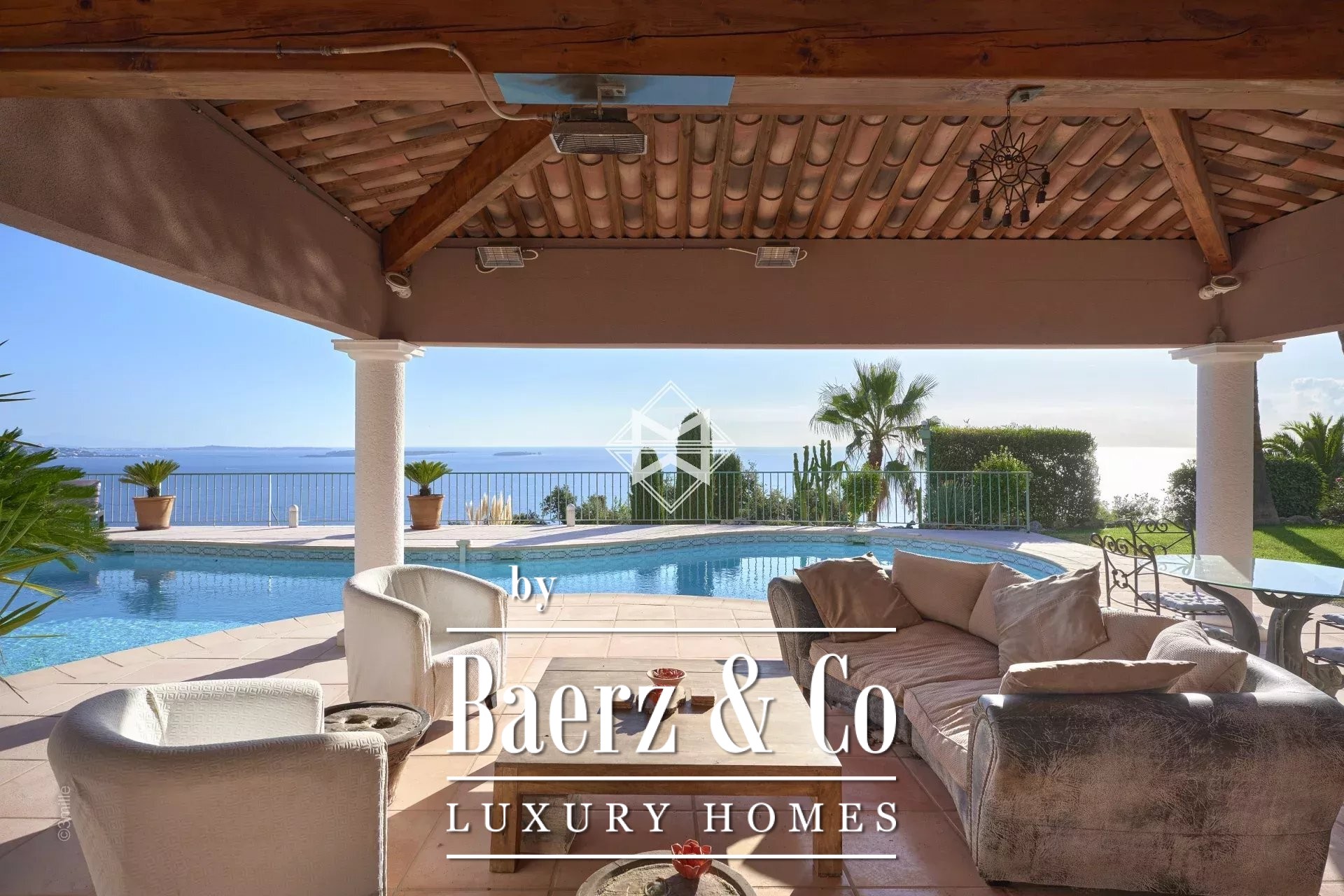 Additional features include a self-contained studio with kitchenette and bathroom, an expansive wine cellar, a garage for four vehicles and carport for two, all within a secured, fenced estate equipped with alarm and video surveillance. Air-conditioning, underfloor heating and tailored amenities contribute to a sense of calm functionality. This villa for sale in Théoule-sur-Mer rests in discreet proximity to La Napoule and Cannes, offering both privacy and connection on the Côte d’Azur.