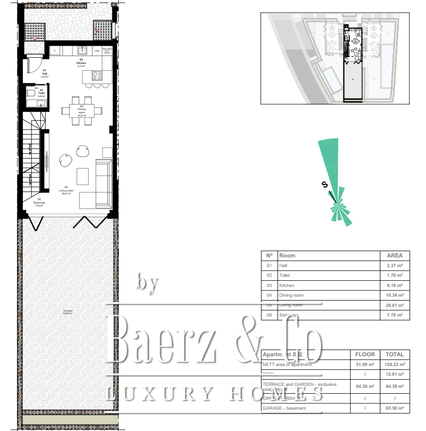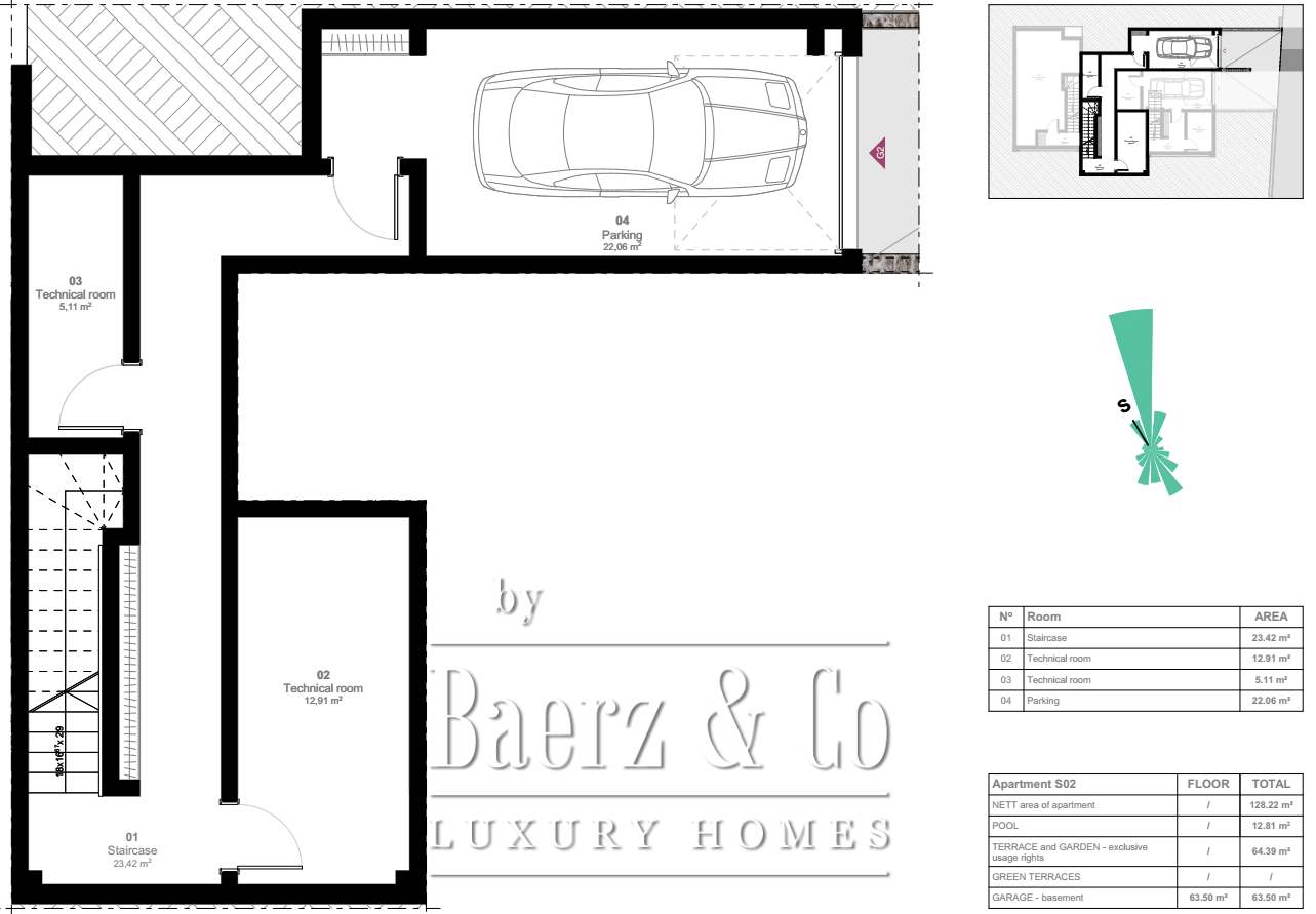 Practicality aligns with peace: there is one garage, laundry and technical rooms, all connected by staircases that unify each floor. The 104 m² plot is steps from the sea, with restaurants, shops and bars within easy reach. The location, just 1.5 km from Tivat’s centre and 100 m from the coastline, offers both discretion and conviviality. House Tivat is not only a Mediterranean retreat, but also a considered opportunity for those seeking a refined base or investment in Montenegro’s evolving landscape.