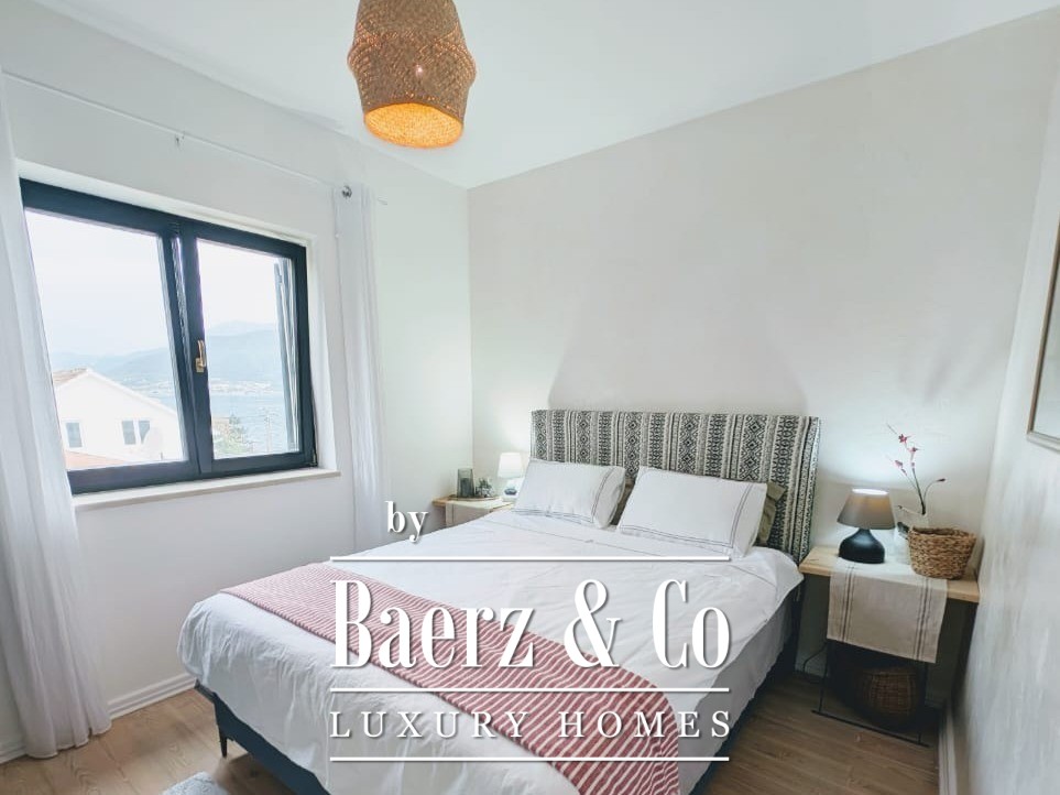 The house unfolds across a thoughtful layout: a hallway, a living room joined by kitchen and dining area, three bedrooms and two bathrooms. Each space is suffused with natural light and oriented to savor the extraordinary views of Boka Bay, an UNESCO-protected enclave renowned for its marine panoramas and Mediterranean vitality.