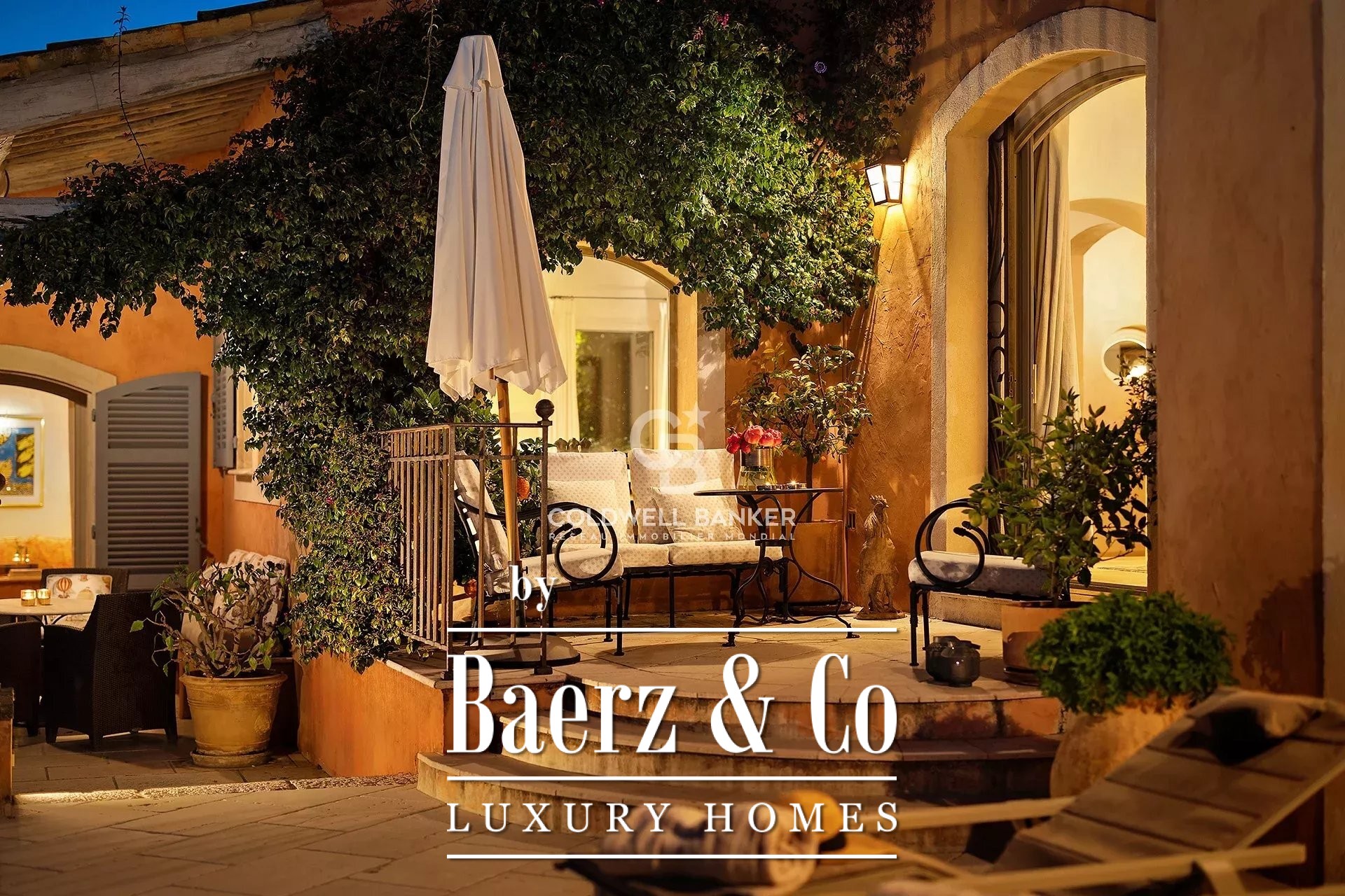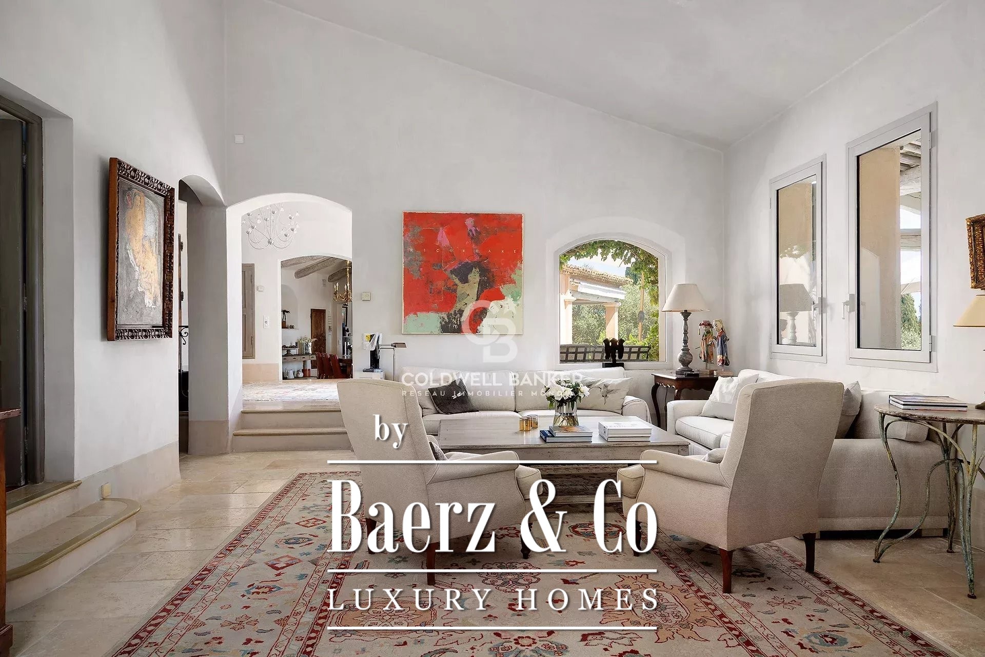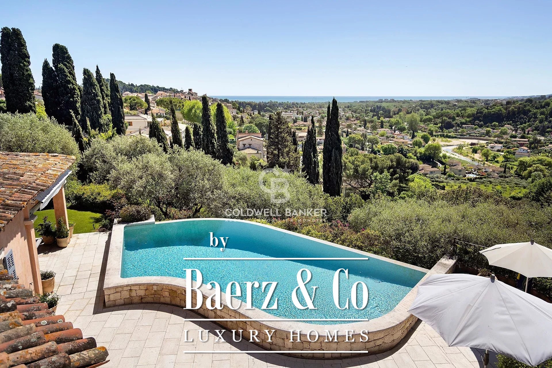Villa Valbonne offers panoramic sea views from a privileged position in the historic heart of Biot. This rare property is composed of two villas, together providing 707 m² of living space, each designed with careful attention to detail and maintained to impeccable standards. The main villa, 440 m², blends Provençal tradition with contemporary comforts. Reception rooms unfold towards the landscape, complemented by an office and a kitchen with a fireplace. Four suites invite calm, including a master suite that captures breathtaking vistas. The covered outdoor terrace merges seamlessly with both the gardens and the pool, extending the living space into the surrounding greenery.