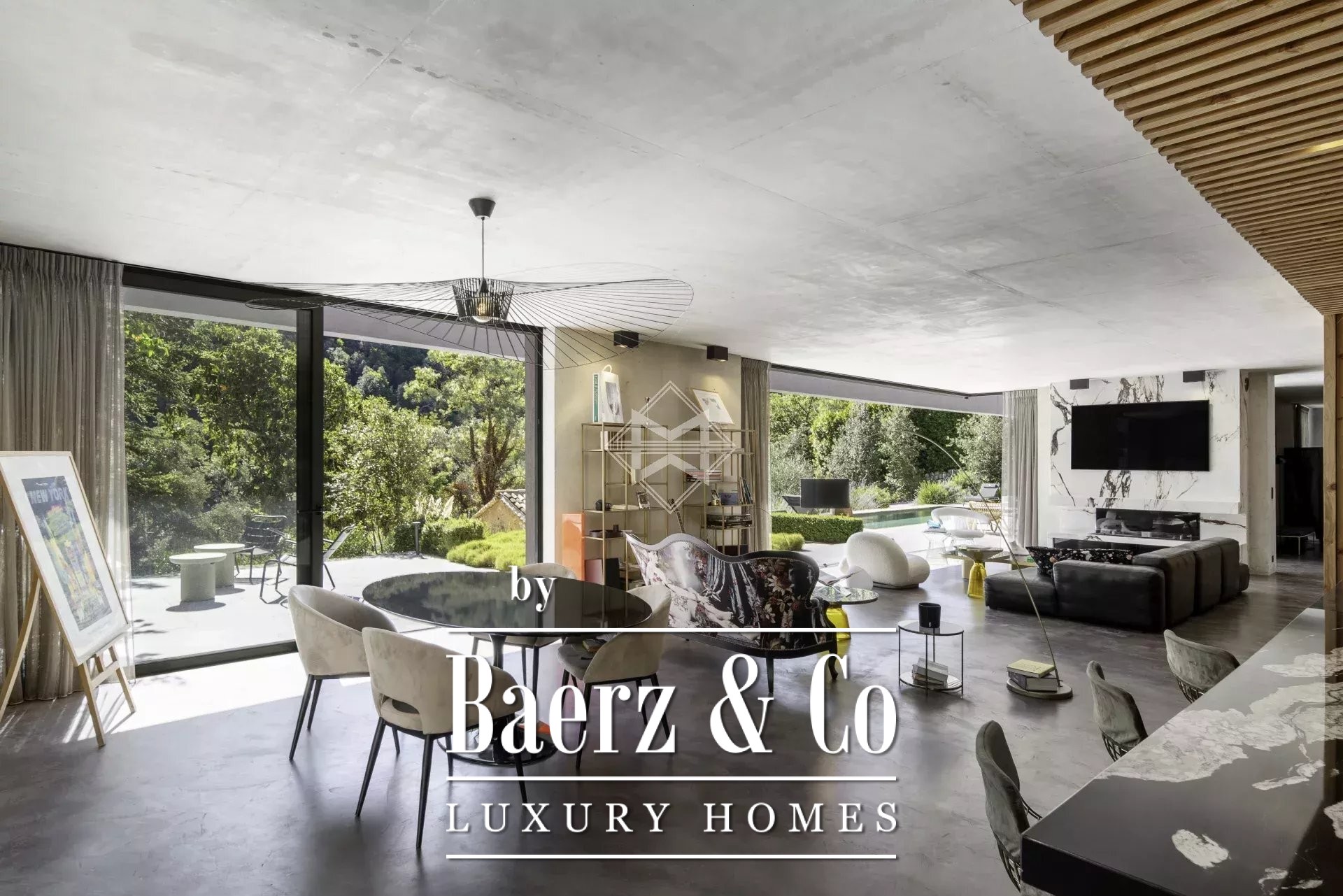 Villa Valbonne offers a considered balance of modern architecture and organic landscape on the edge of this historic French village. The 240 m² contemporary residence, set within 4,798 m² of thoughtfully landscaped grounds inspired by the English Garden ideal, delivers an atmosphere of refined privacy and authentic tranquility.