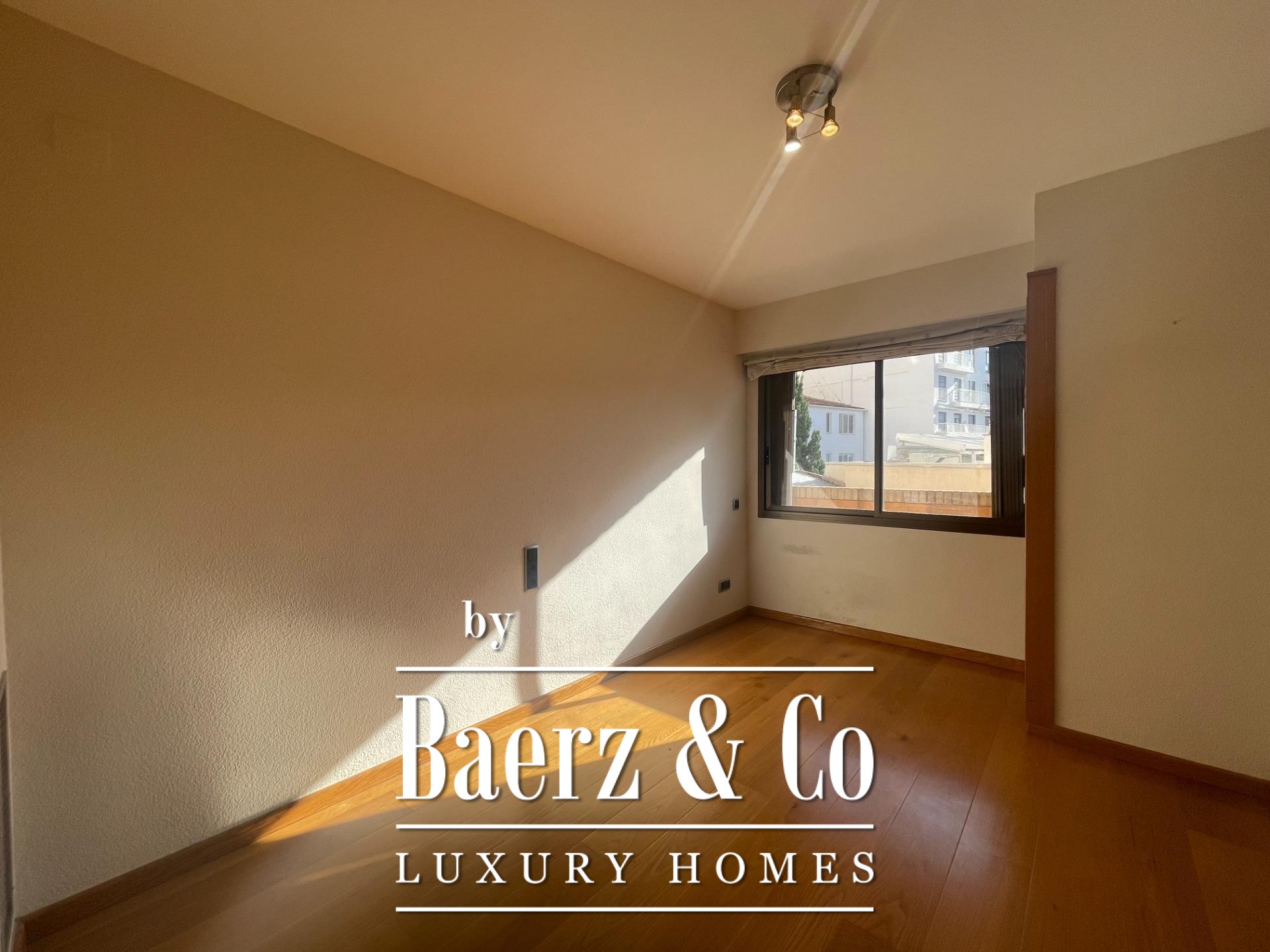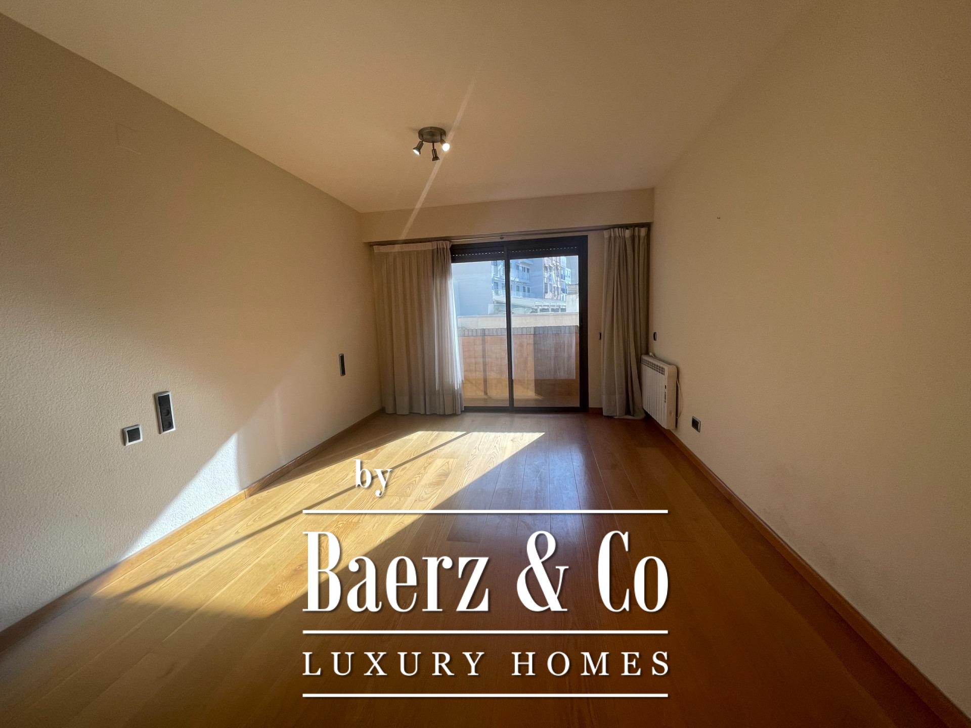 The kitchen is both spacious and functional, offering room for informal dining and access to an interior terrace. Marble floors accentuate the entrance and common areas, while oak and wooden floors in the living room and bedrooms bring warmth and subtlety. The apartment is fitted with ducted air conditioning for year-round comfort and features internal oak woodwork. A parking space in the building elevates convenience.