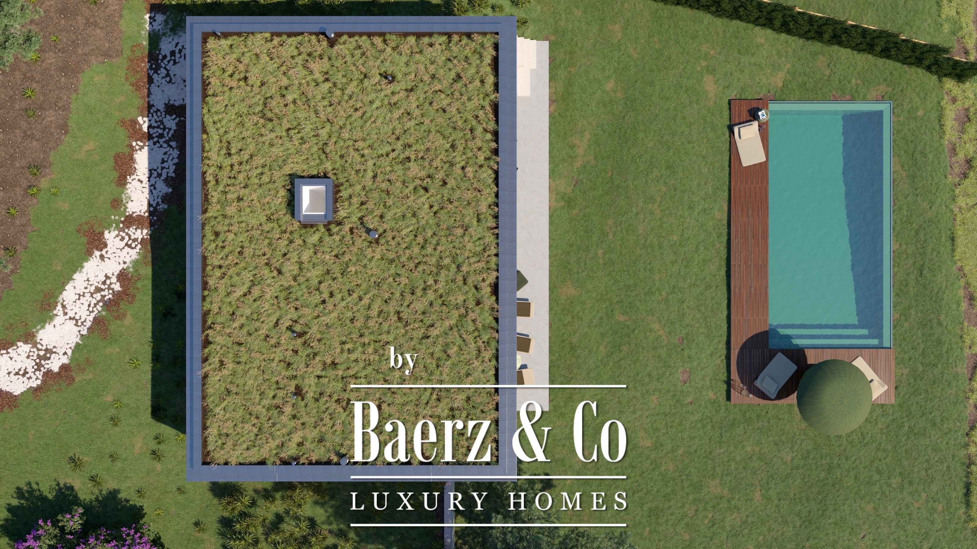 A reinforced concrete swimming pool of 5 by 10 metres, wooden deck, and full lawn extend the living experience outdoors. Discrete features such as an armored steel door, natural stone flooring, ecological roofing, and integrated storage exemplify the villa’s unspoken quality. The residence includes a pergola with parking for two vehicles.