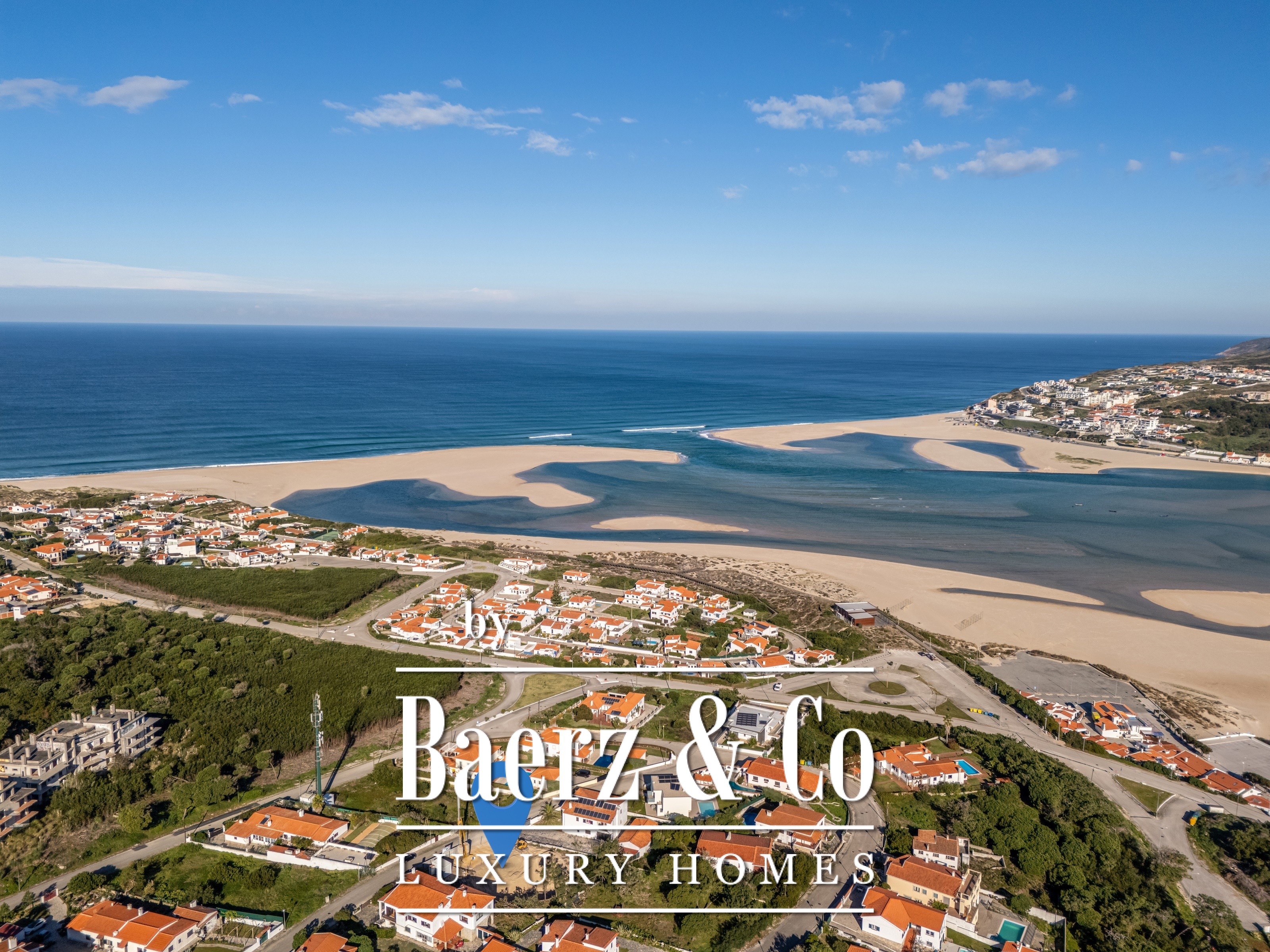 Outdoors, a swimming pool invites a measured rhythm of sun and water, set moments from Praia do Bom Sucesso, adjacent to golf and a selection of restaurants and cafés just 50 meters away. The property’s A+ energy class and location—15 minutes from Óbidos, one hour from Lisbon—combine privacy with access, making this luxury house for sale in Vau a considered choice for those pursuing atmosphere and discretion by the sea.