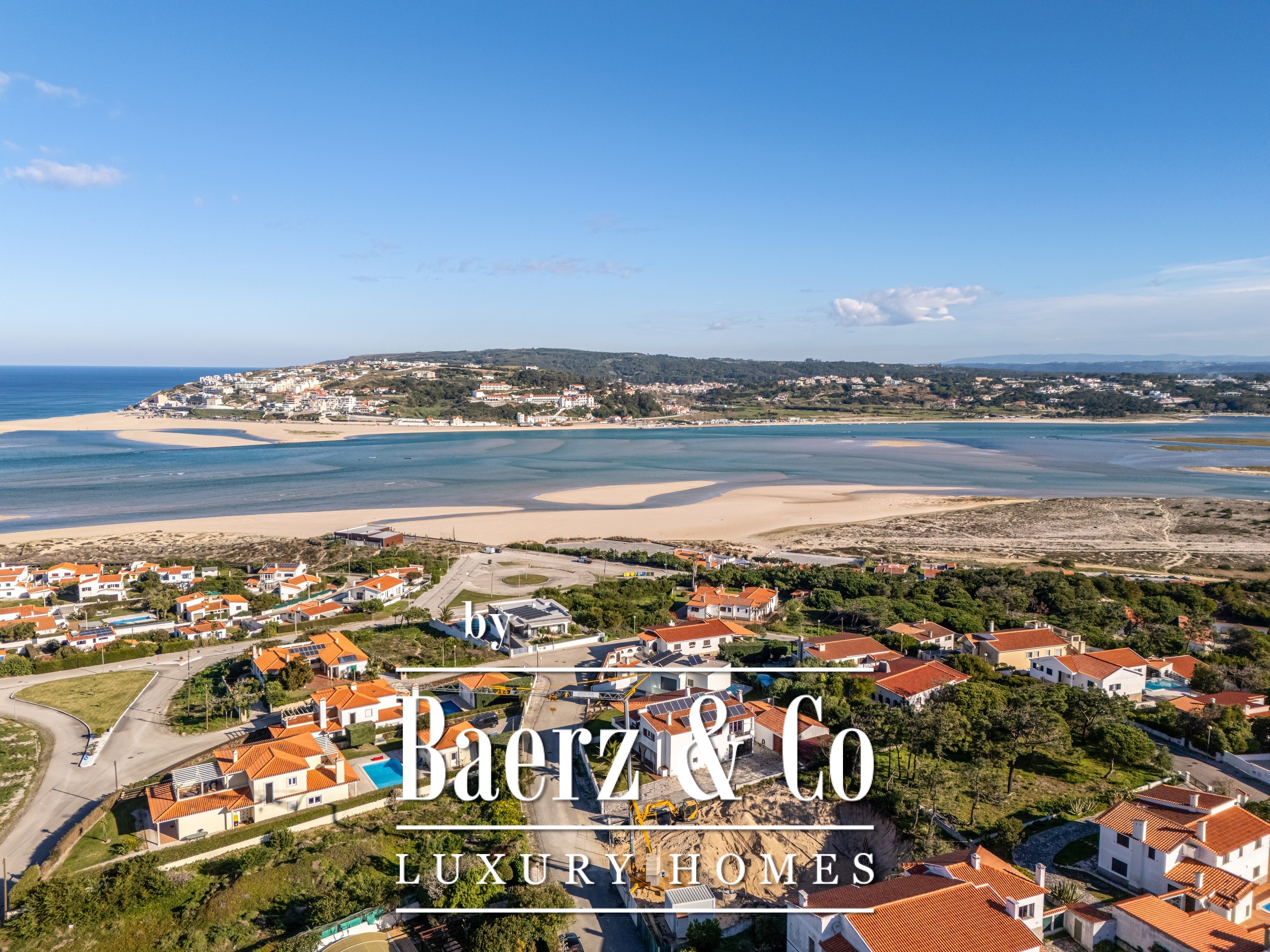 House Vau with lagoon and sea views presents a compelling proposition for those seeking serenity and design in Portugal. This newly constructed four-bedroom residence spans 353 m² of living space on an 891 m² plot, oriented to capture sweeping 180º views over the Óbidos Lagoon and the Atlantic sea from its rooftop terrace.