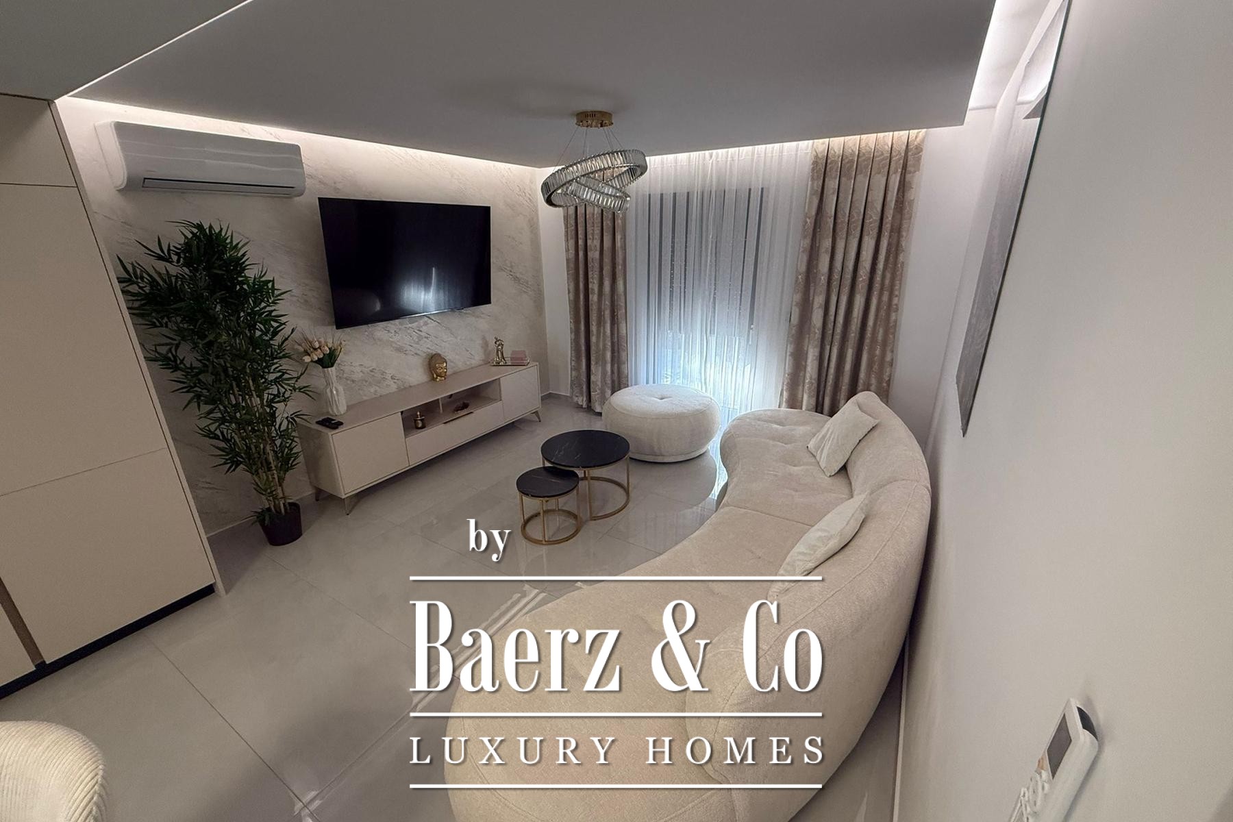 The main residence comprises a 72 m² ground floor apartment with an enclosed 36 m² terrace and a practical 4 m² outdoor storage, totaling 112 m² of thoughtfully arranged space. Above, the first floor apartment mirrors this with 72 m² of interior living, opening to a 22 m² covered terrace, bringing the floor's total to 94 m². Each apartment is distinguished by contemporary furnishings, high-grade appliances, and full air conditioning, complemented by designer details that lend a quiet discernment to everyday life.