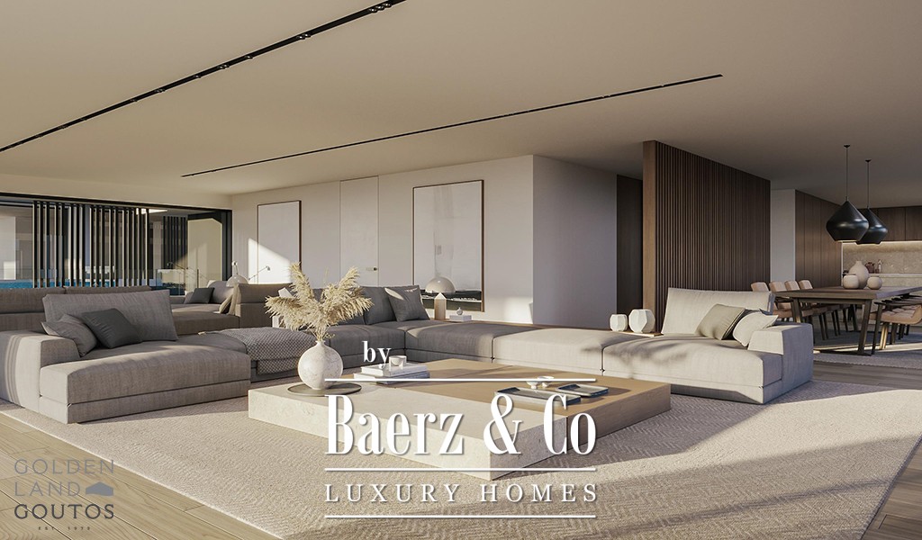 Three spacious bedrooms each feature an en suite bathroom, ensuring privacy and comfort, while an additional guest bath enhances functionality. The private balcony frames unobstructed sea and sunset views, offering an intimate vantage to savor the rhythms of the Aegean light. Crafted with acute attention to detail, the interiors feature premium flooring and carefully selected fixtures, underscoring the commitment to quality throughout.