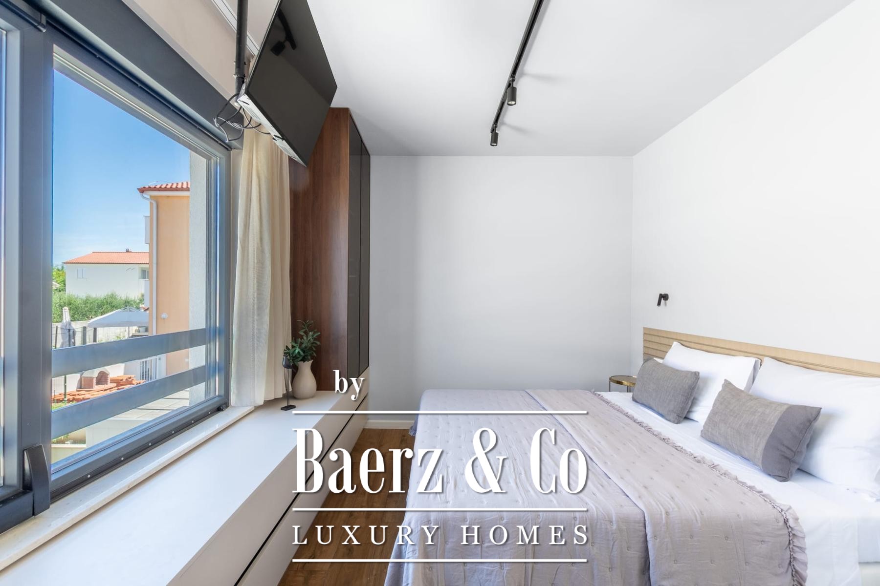 The outdoor realm features a 53m² swimming pool, a 32m² garage with storage, additional parking, and a built-in barbecue. Proximity to the local beach, restaurants, shops, and the historic towns of Nin and Zadar enriches the slow, ambient pace of life. This luxury villa for sale in Vrsi Croatia is a study in measured elegance, balancing modern comfort and timeless Dalmatian charm.