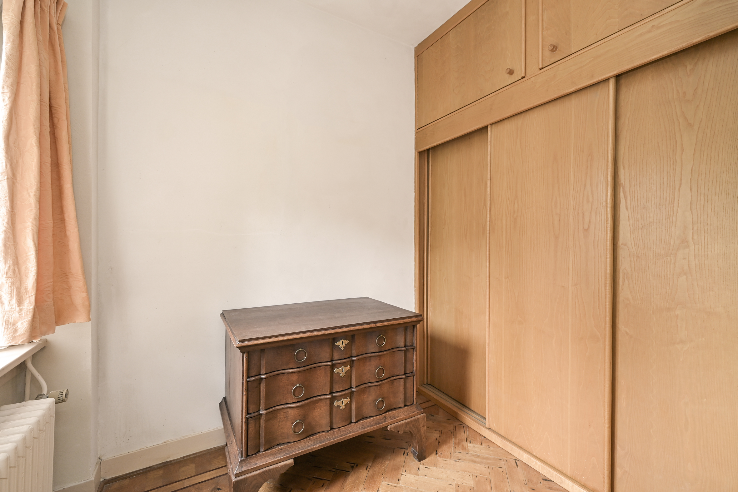Second floor: Bright landing, two excellent bedrooms, and a third slightly smaller bedroom where a good-sized bathroom could easily be created. Plenty of closet space, and again, all rooms are fitted with oak flooring.